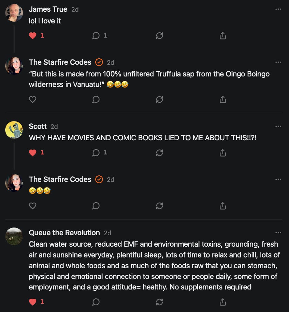 [In response to “If the powder is derived from a rare fruit or something that sounds like a Dr. Seuss character, or only grows in remote parts of the world you have never been to, your body absolutely does not need to consume it.” - TPWSYL, Why is Wellness So Fucking Annoying?]