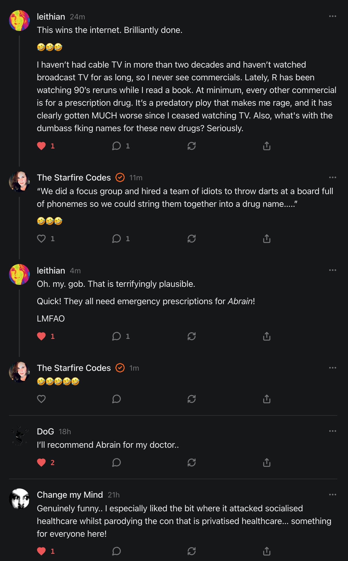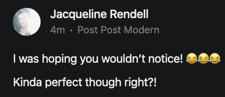 I agree. I also think we need to take back our own humor, our own words, our own ways of being, and instead take on a certain fearlessness about what we say and how we say it, one that doesn't cater to others or bow down to them. Ideas need air to breathe. Not all of them are going to be good. But we need space and time to talk them through and laugh about them and workshop them and just simply exist and be... without having to police everything that comes out.