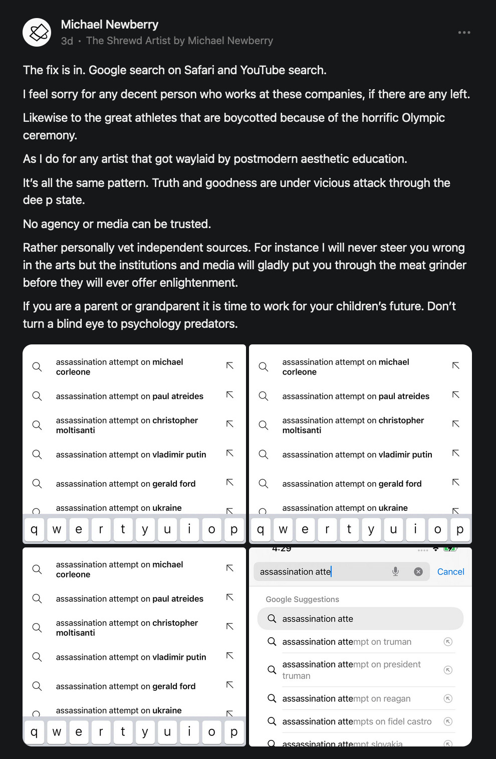The discovery engines are limiting the range of discovery to the confines of the manufactured Overton window, and word of mouth is being curtailed by keyword algorithmically.
