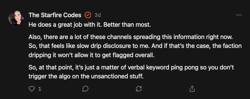The Starfire Codes produces an audience-supported publication with a stellar podcast, consciousness-expanding daily spiritual content, and well-researched articles on forbidden but crucial topics.