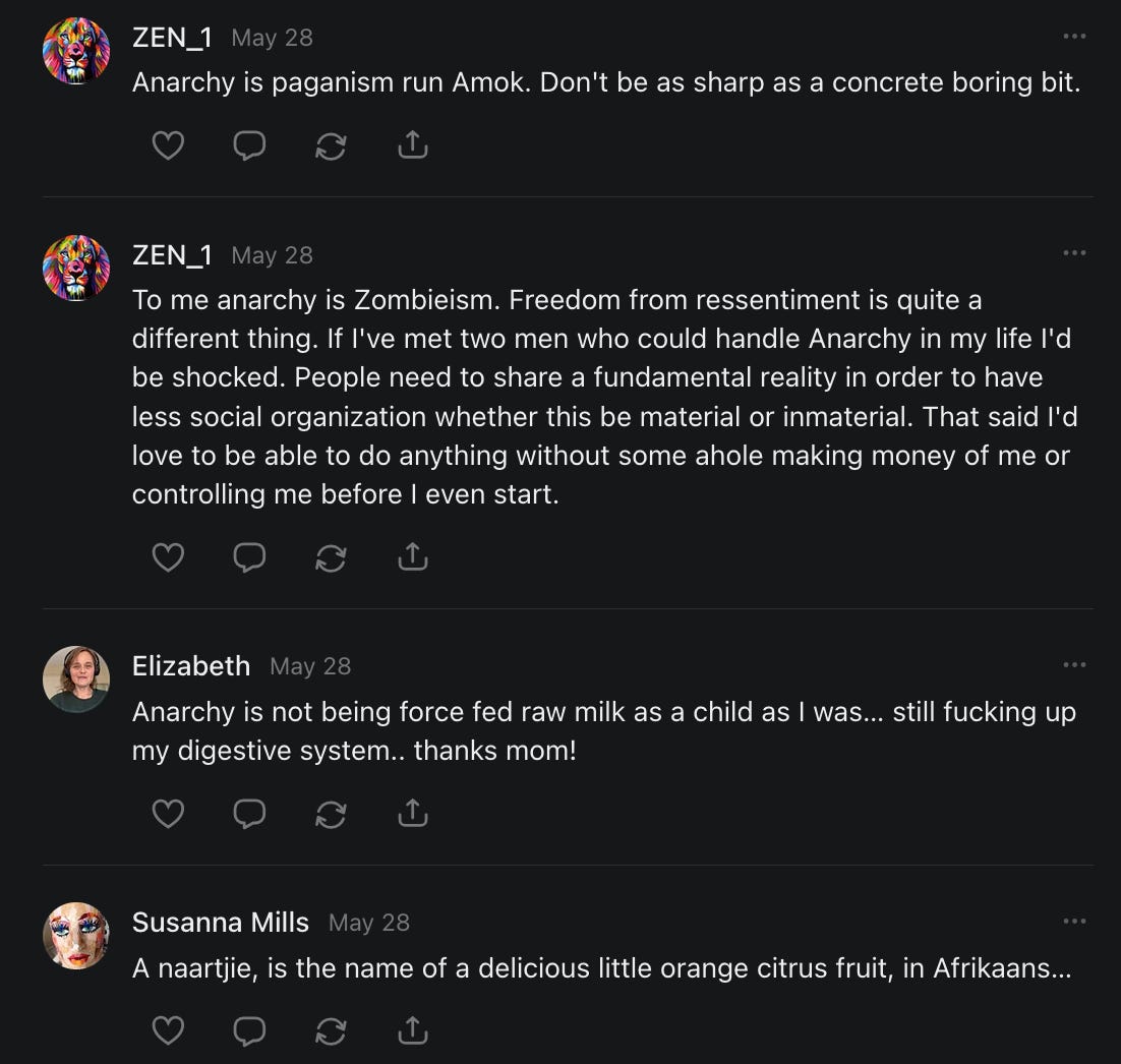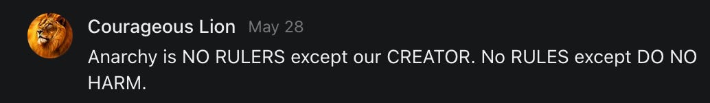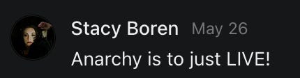 ANARCHY IS NOT INCITING VIOLENCE AND CHAOS. IT’S LIVING FREELY AS WE WERE MEANT TO.