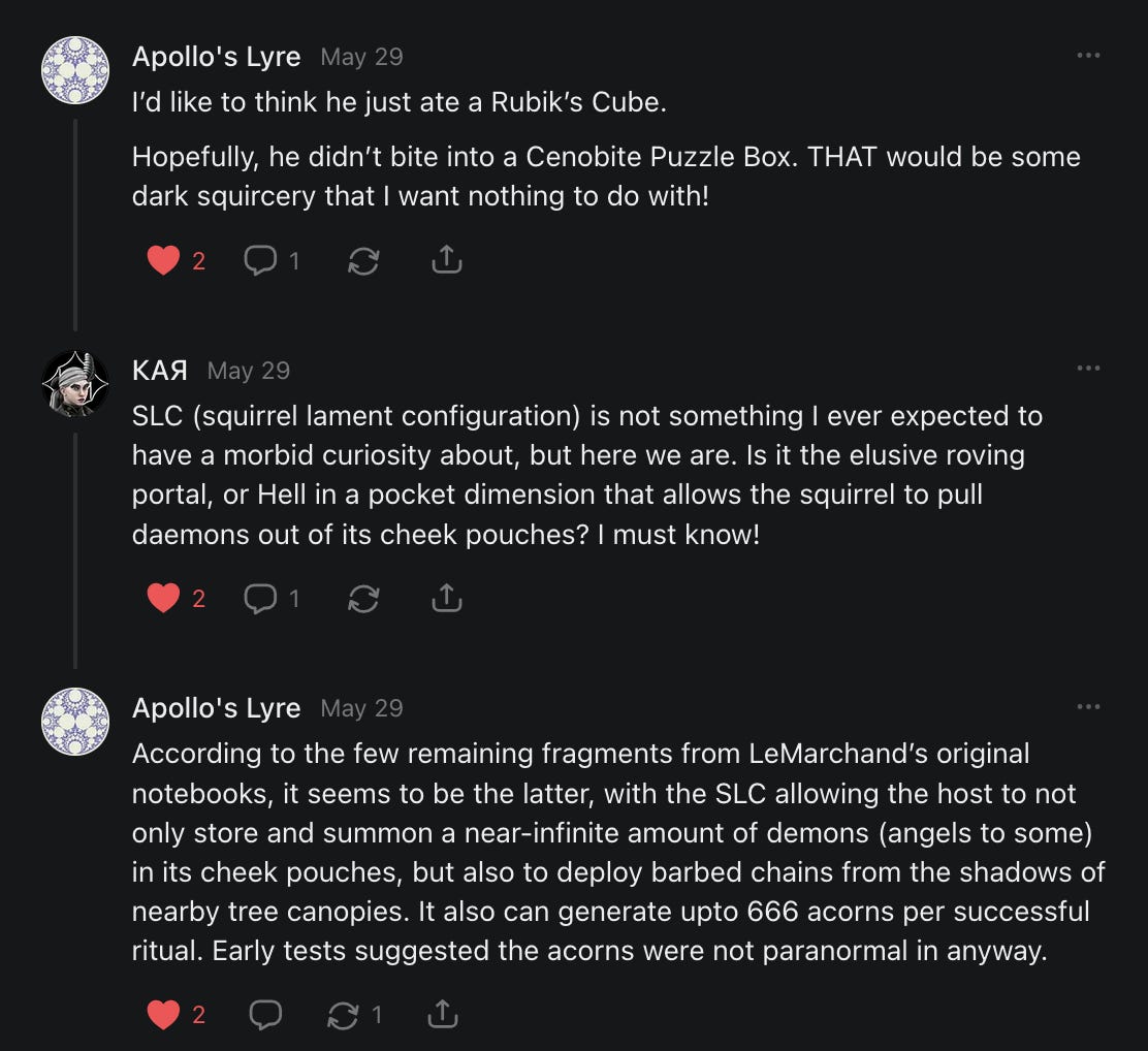 THE SCROLL exists to serve our community by creating an additional method for discovery and interaction. This whimsical and Lynchian collection of interesting exchanges is laid out with all the links and tags required for maximum readability in an effort to highlight some of the best conversations that are happening throughout our community.