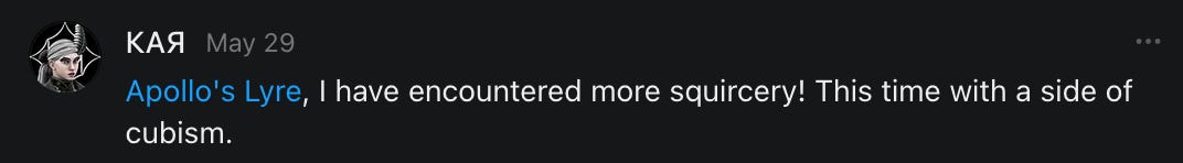 [NOTE: Runners up for “Squirrel Lament Configuration”….]