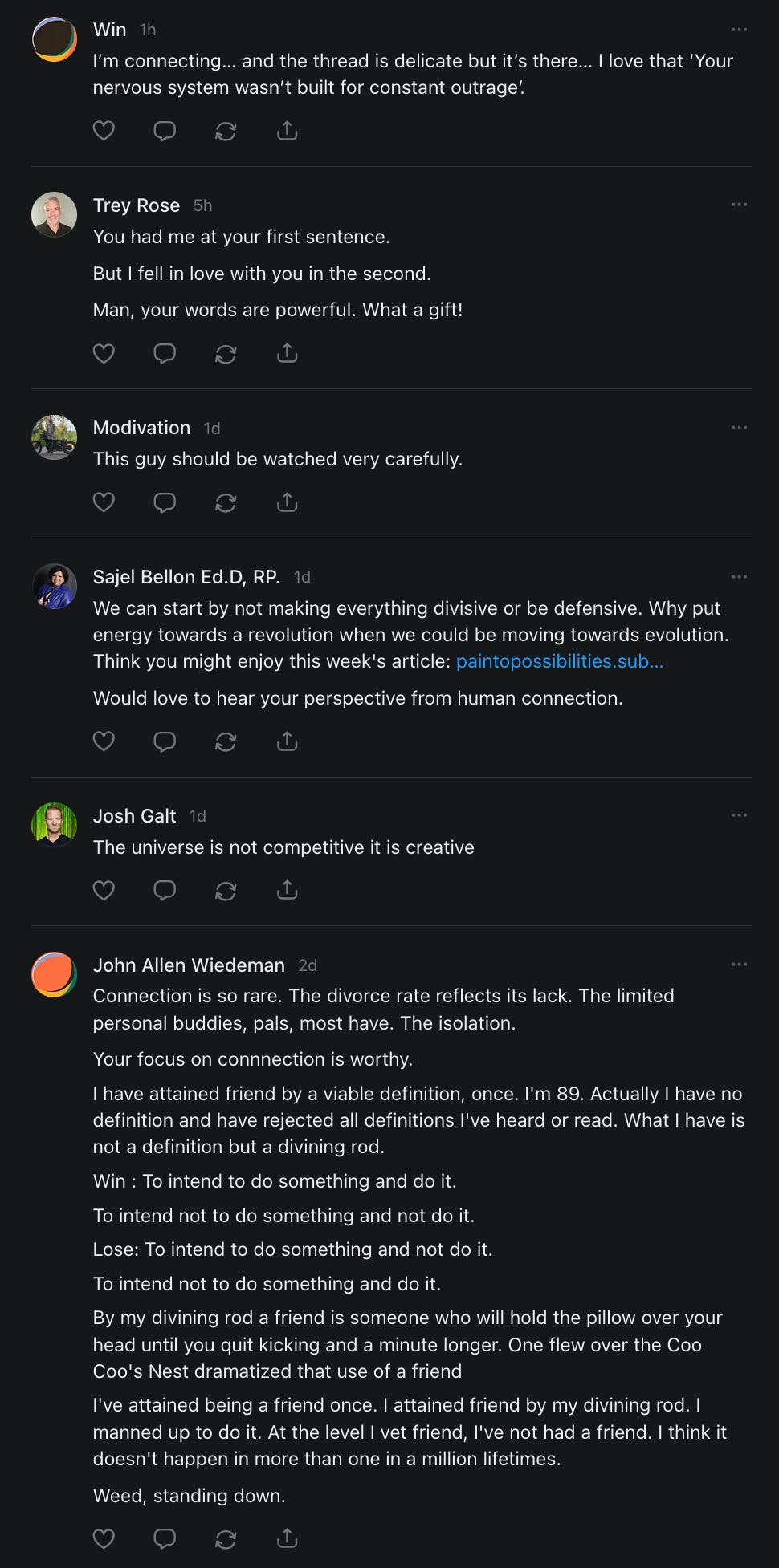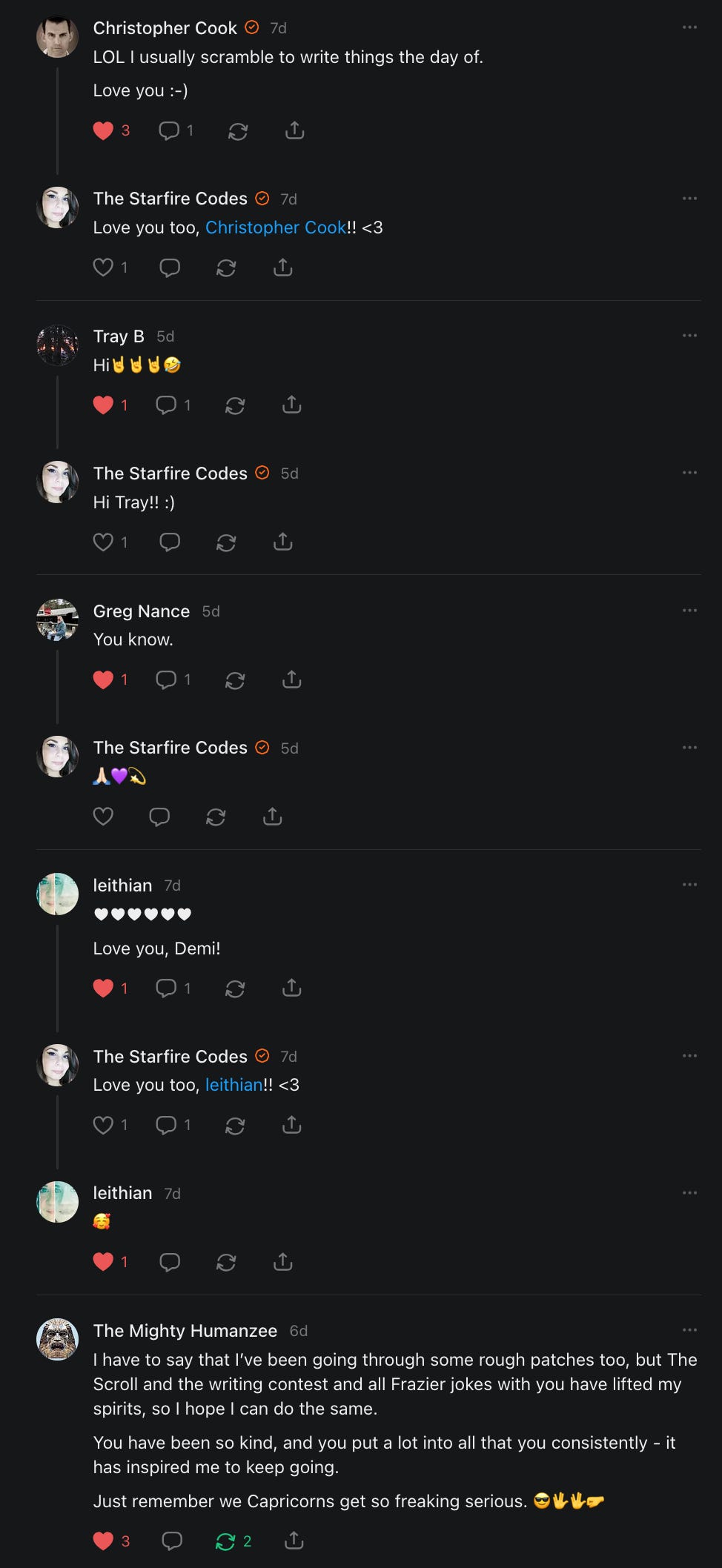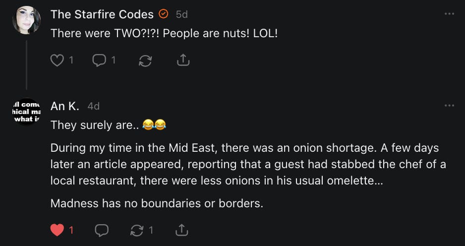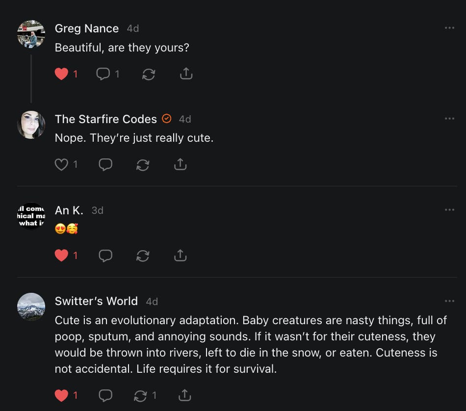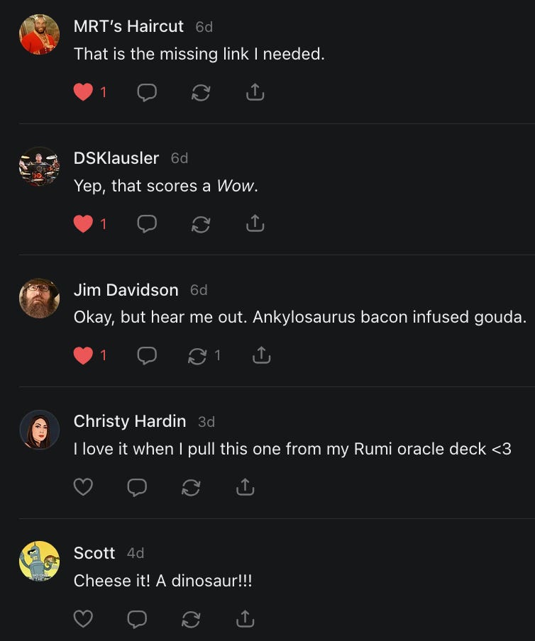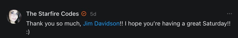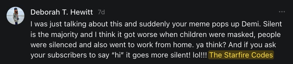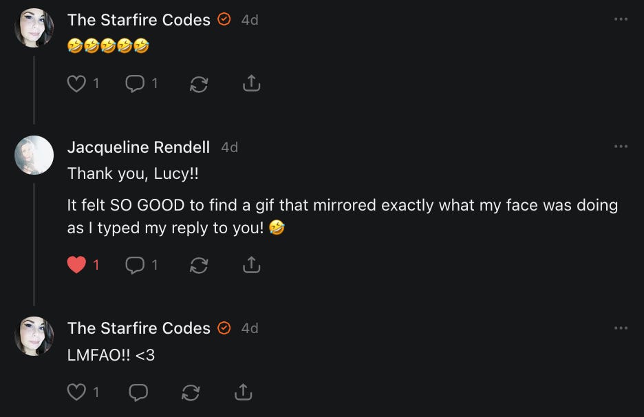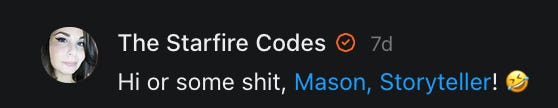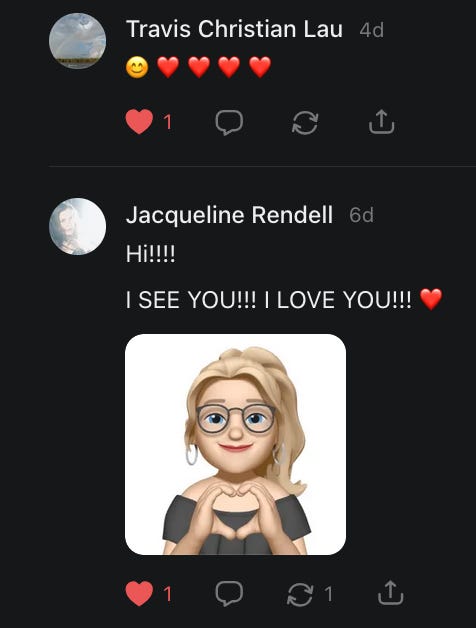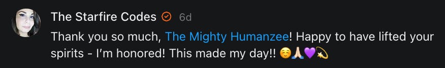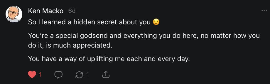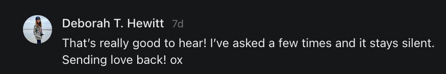 I had forgotten about this title meme, asking people to say hello, and wouldn’t you know it - it came up when I was having a really bad day and I needed to hear everything that all of you just said to me in the comments and in your restacks.