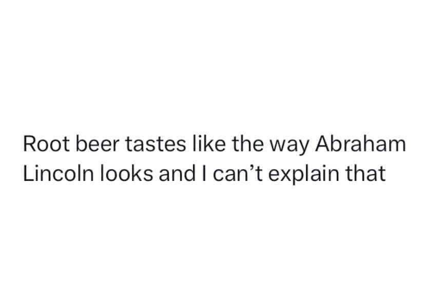 "Root beer tastes like how Abraham Lincoln looks." Ha, when I was little my mom during kraft time would prompt: "What color is 5?" I was always adamant in my choices of colors. 100% its red. : )