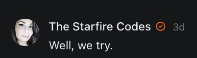 This is what we do full time. Thank you for all of the ways you support The Starfire Codes! It means the universe to us. 🌟