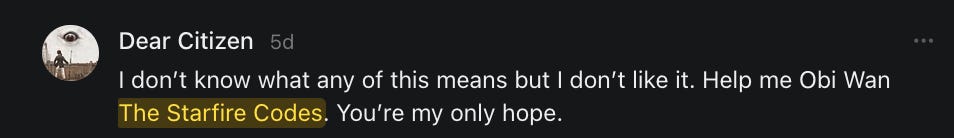 The Starfire Codes produces an audience-supported publication with a stellar podcast, consciousness-expanding daily spiritual content, and well-researched articles on forbidden but crucial topics.