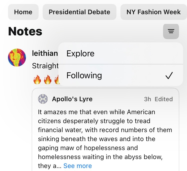 In "Explore" mode, you will still see stuff from people you follow or subscribe to, but this serves as a discovery mode which adds in a much broader range of content. (See image below from my own Following feed. You can use this button to toggle between the two settings.)