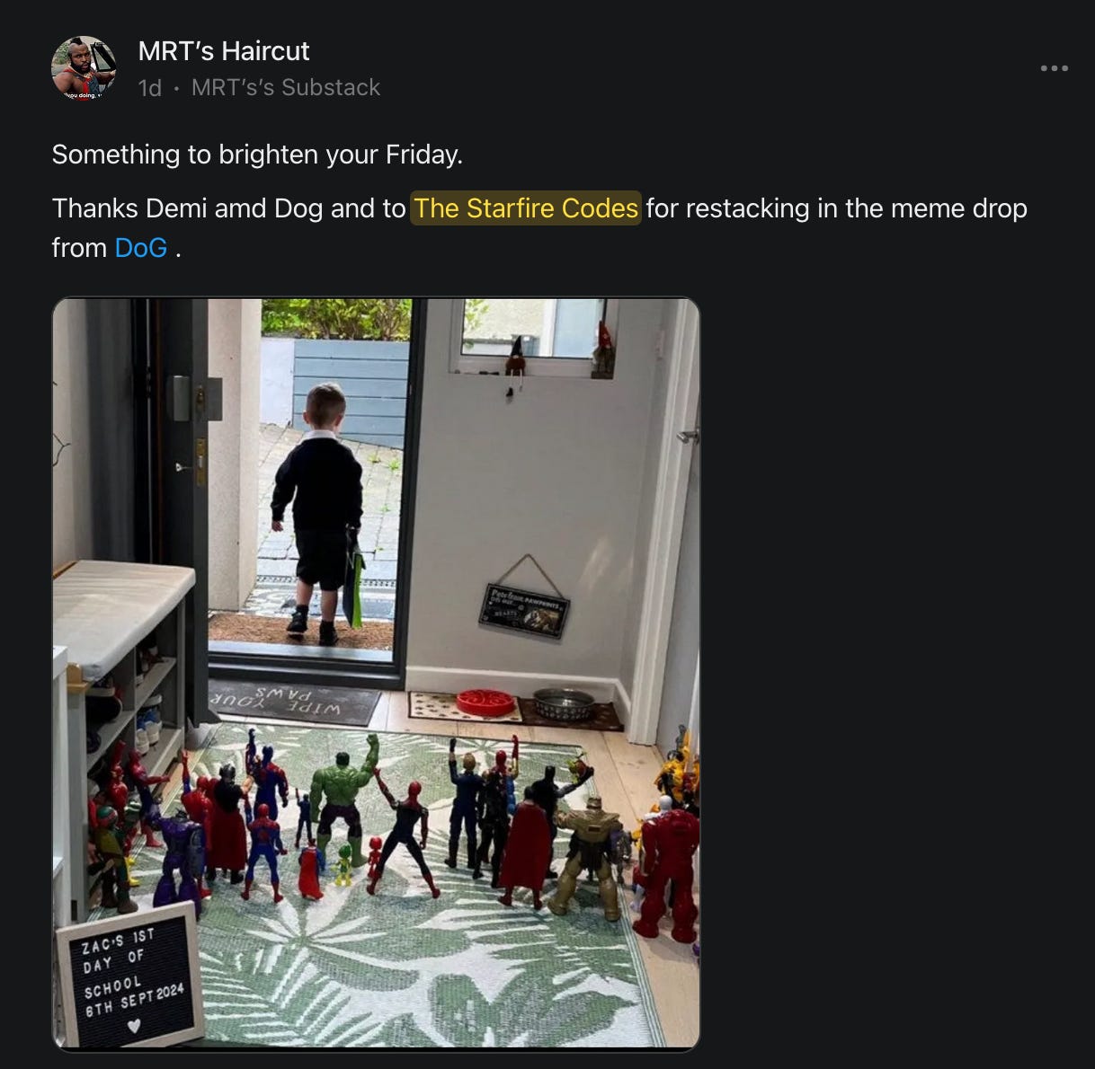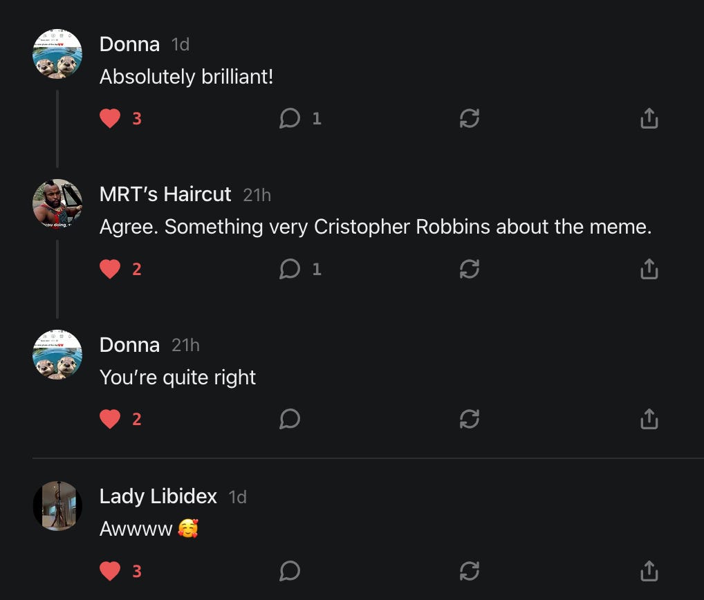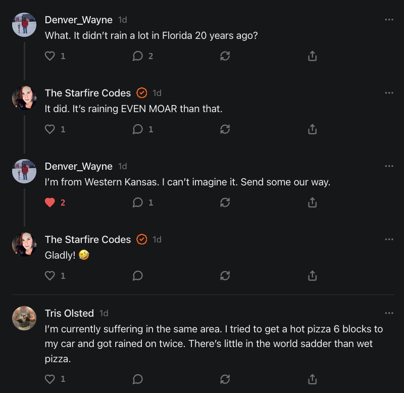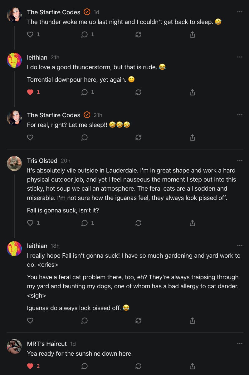 For those of you who have written to me that I am not appearing in your Notes feeds, I did check with Substack and there's nothing on their end which is causing that to happen.