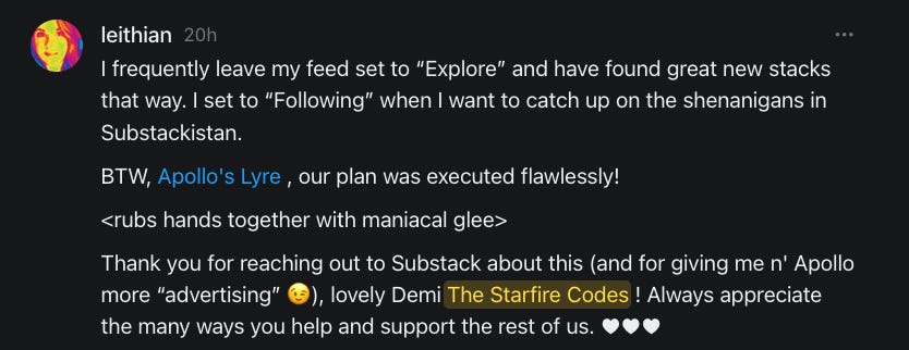 But Niall @ Substack took some time out to give me some wonderful notes for all of you on how to make sure you are seeing the people you want to see!