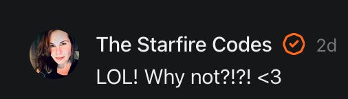 This is what we do full time. Thank you for all of the ways you support The Starfire Codes! It means the universe to us. 🌟