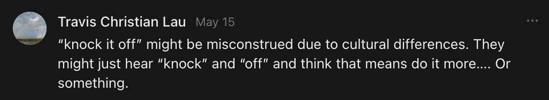You get frustrated, and eventually, your threshold for pretending to care about silly things like that ends up in the fuck it bucket. 🤣