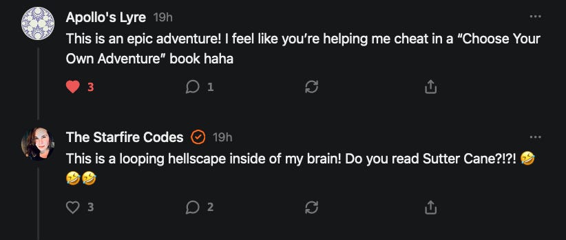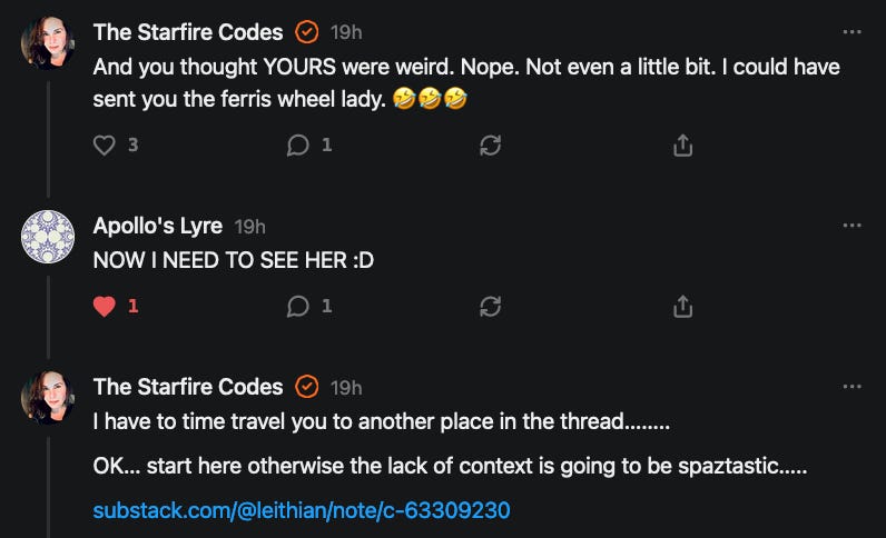 , The Amazing Dialectical Circus, as well as a continuation of the conversations from the Expectation II section of THE SCROLL: Is Your Support Network Really A Barbed Wire Fence?, the Expectation III section of THE SCROLL: How To Start Building New Models, the Synchronization Rituals section of THE SCROLL: BREAKING NEWS: Biden’s Behavior Has Been Exactly The Same For The Past Five Years, the Uninhibited Woo Of Tarot In Reverse And The Perils of Being Unabashedly Yourself section of THE SCROLL: We Were Somewhere Around Arkham When The Rhizomatic Seusstravaganza Began To Take Hold…., and the Hyperstition section of THE SCROLL: Send In The Clowns? Don't Bother. They're HERE.......]Sasha V, great piece! I’ve been having this same issue while trying to look more deeply into hyperstition as simply a version of manifestation technique.