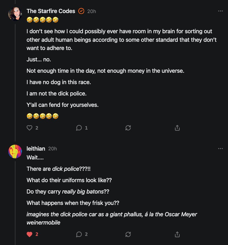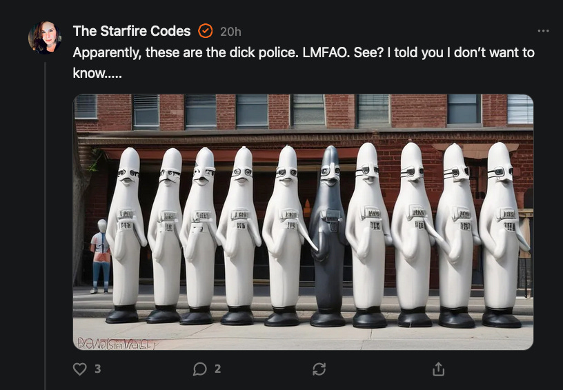 Wtf is this post about? Wait, white ketchup, cocaine orcas and dildo dick police? What rabbit hole is this, Alice?