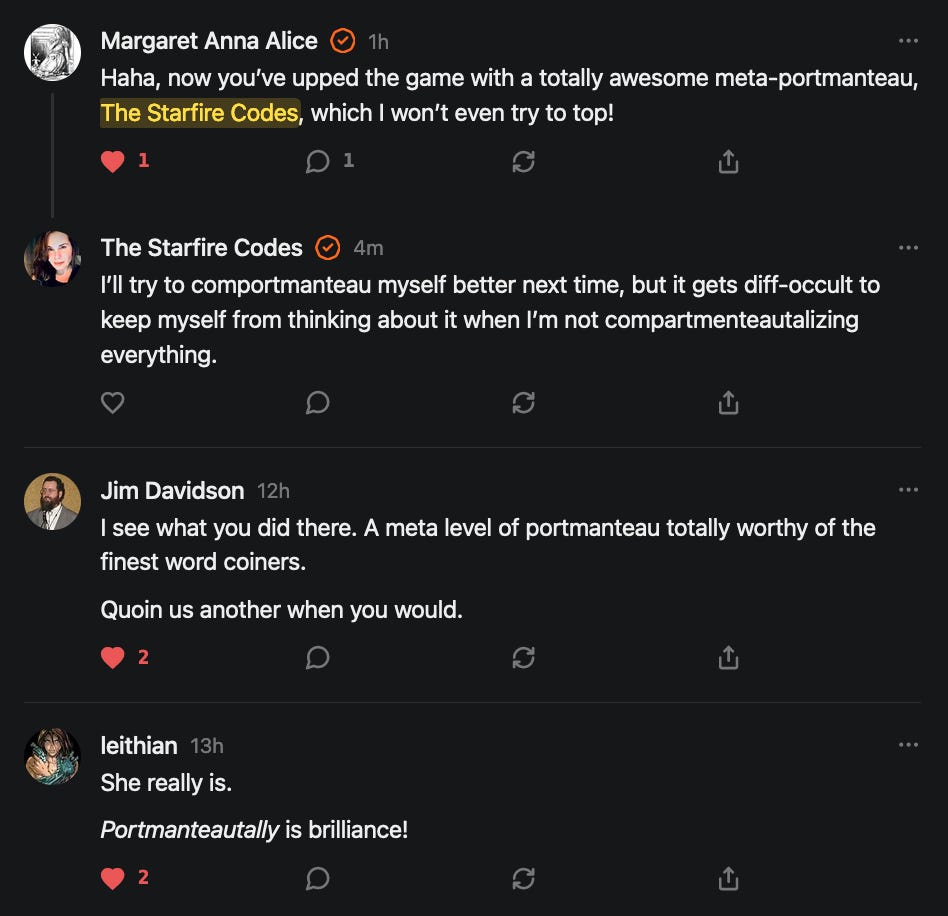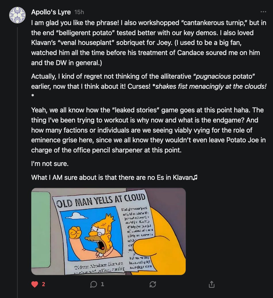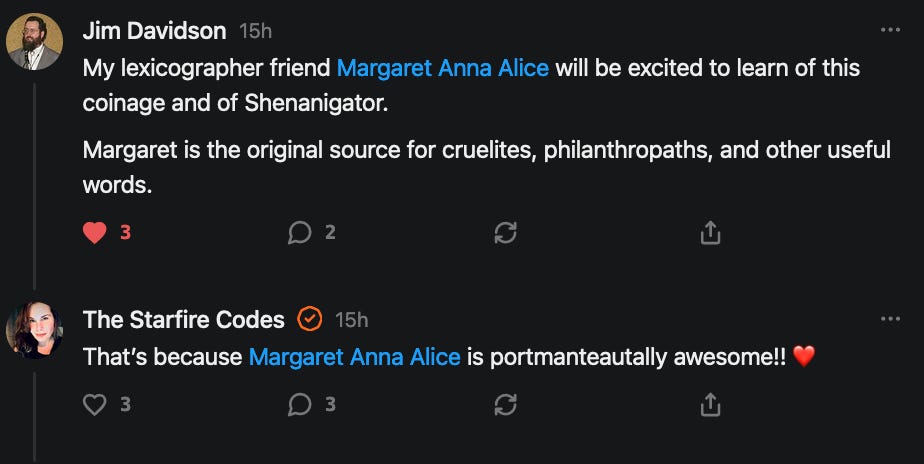and , in response to the Internal Monologue section of THE SCROLL: In Which The Memelords Survive Tragedy With Comedy, Alien Cat Cake, And A Strong Cup Of No Bimbo Joe:In Which I Expand My Vocabulary