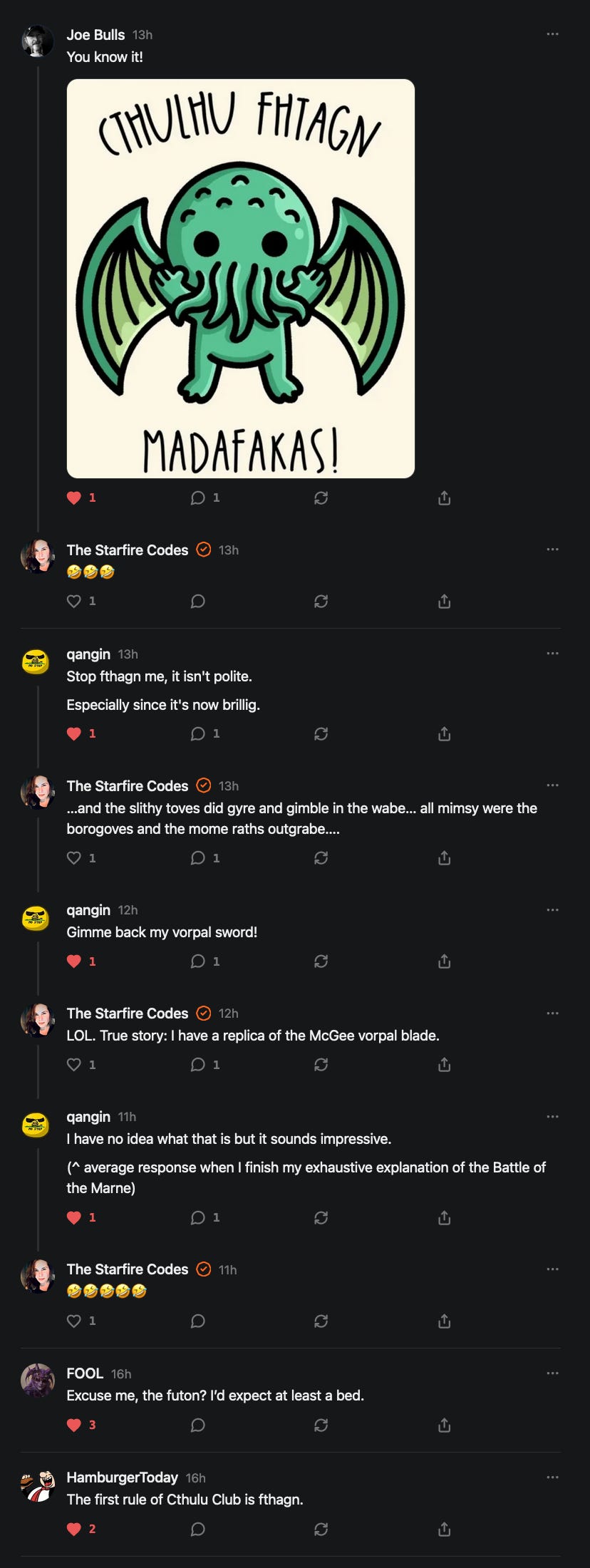Chutulu Club rocks, today I'm grateful for Nick Land. Lol.