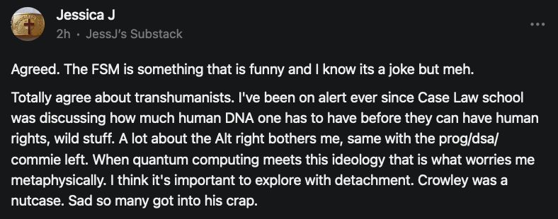 Land’s intentions are to do away with humanity. That puts him squarely in the Transhumanist Sickest of the Sick Fucks category in my mind.
