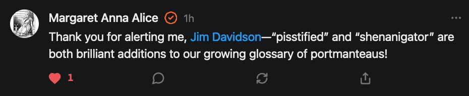 and , in response to the Internal Monologue section of THE SCROLL: In Which The Memelords Survive Tragedy With Comedy, Alien Cat Cake, And A Strong Cup Of No Bimbo Joe:In Which I Expand My Vocabulary