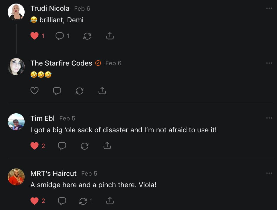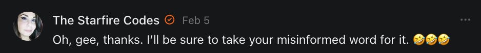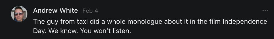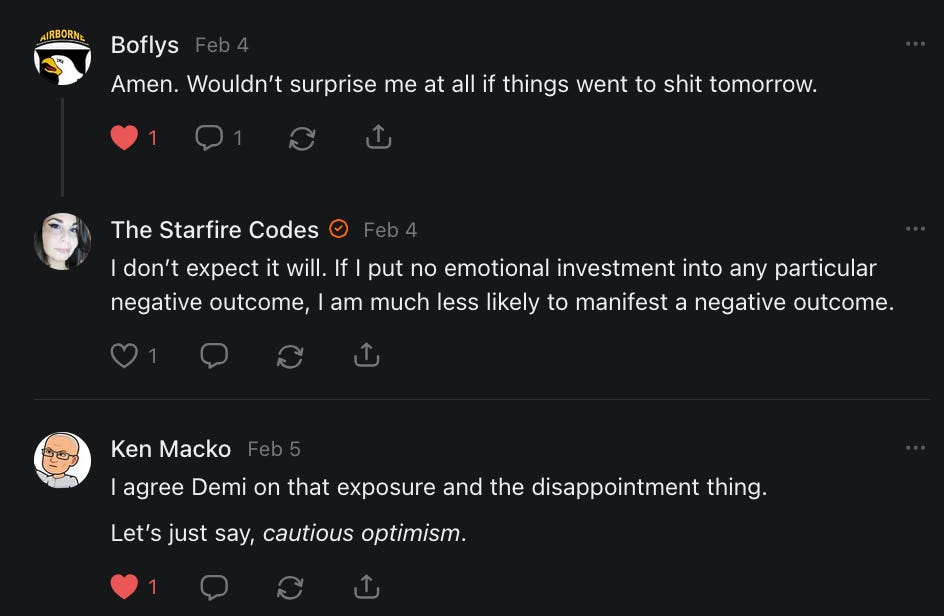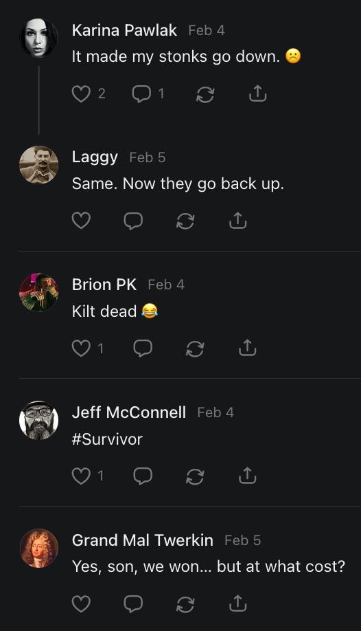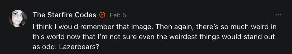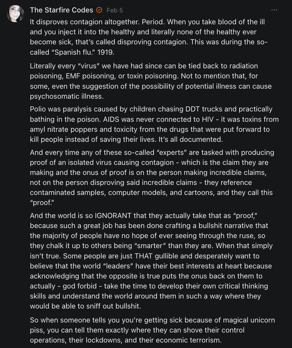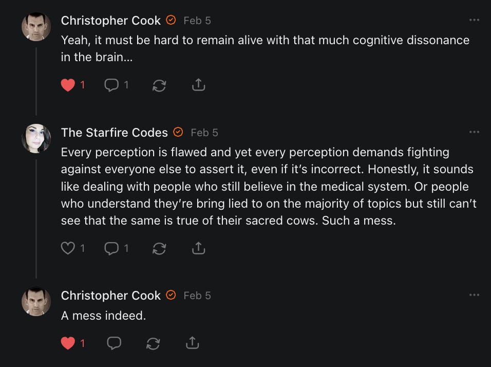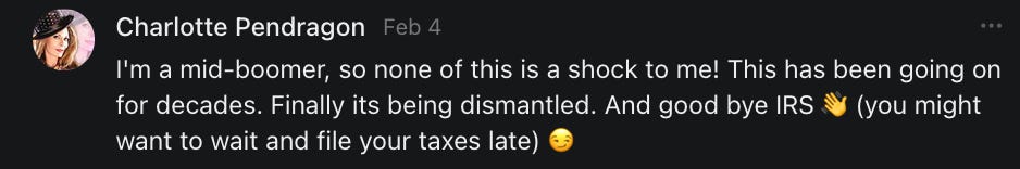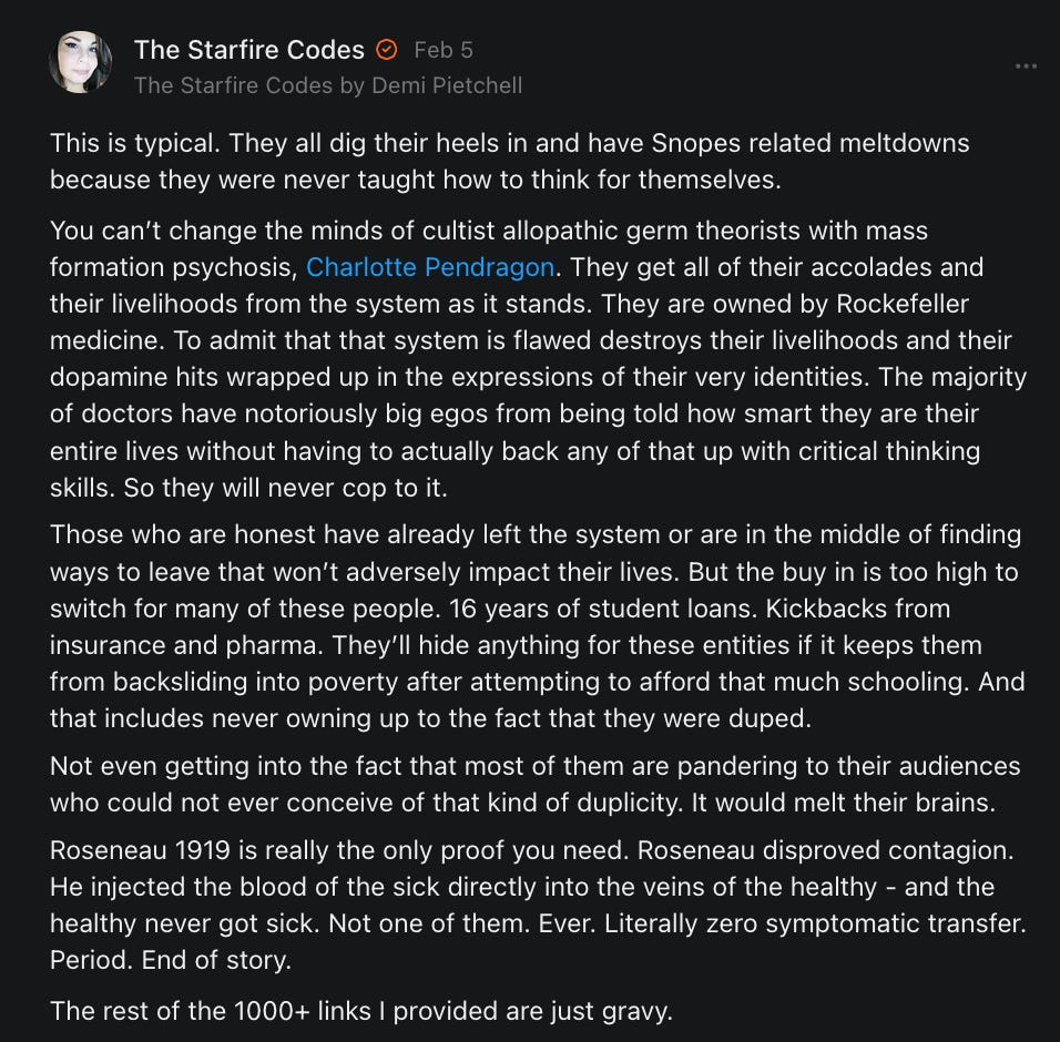 Special thanks to Michael Newberry, Switter’s World, Tracy, Blessed Warrior Reina, Sasha V, valerio, American Nobody, Nani Lani, Karen LeBlanc, Asperges, Rat, Ken Macko, Buggs, Moms Justice Alerts, Johanna Polus, Bobby Schlueter, qangin, Roger, Cameron M. Bailey, The Contrarian Capitalist, Flea Mason, Nathalie Martinek PhD, IPR with Mack Morris, Austin Muhs, Charlotte Pendragon, PhilanthroPissed, E. Jackson, - Rothi I S I P U -, Kent Peterson, Apollo's Lyre, mg, Boflys, Amber Block, TJ, Jeff, Atomic Statements, Becky N., smellycarney, Laggy, Austin Caroe, The Underdog, MJNAVET, Kenneth R. Mintz, the long warred, Philip M. Smith/“Big Philly”, Lex Rex, Esq., Julie, Gary E., MRT’s Haircut, Koltin Scott, Andrew White, Rascal Nick Of, Jim, Anomalous Farrier, Librarian of Celaeno, Love, IPR with Mack Morris, Vance Gatlin, William Hunter Duncan, i3utm, Barbara, Brett A Dill, HamburgerToday, Sandra Combs, Christy Hardin, Doctor Kitt, Joseph Hex, An K., A Citizen, Demonhype, Miss Information, Alfred, Lord Featherstonehaugh, Shanti Rae Lobaugh, Bill, Lia, 2aAlltheWay, Constance, Greg Nance, Xingyi, Chris Falk, Myriad Mike, Stratum Press, Michael Smith, Jake Purvis, Simon Tanner, Jeff Melody, Adrian, Jules, Nels Cutchall, Bart Bounds, Gregory Woods, Teresa Thibodeaux, Debra Szalay, Villein Villion, Erick, Duane, christopher cheatham, Chef Sherry, Norm, Lisa Nicholson, AllAboutEve43, Richard Blackwell, jennifer dibley, Fallon Clark, Andrew | Dad Explains, 13/1 NYS CONstitution, Mike Moschos, Brion PK, Frater Seamus, Kevin Fredericks, Rene Jax, 2aAlltheWay, Dear Citizen, Robert C Culwell, Grand Mal Twerkin, Karina Pawlak, Mike Lara, Jeff McConnell, Jacquelyn Gill, Wolf Krauß, werner aquadea, Susan Taapken, Grand Schemes, Cori Bren, Darian Δ, the author, Jean Marie Bauhaus, Thea, RECrowley, Lin, goodnightrose, Travis Neville Author, splendidretainer, In Love with a Dead Man, Braeden Mitchell, Darrin, Alison Bull, Duane, Stephane J. Perrin, The Mighty Humanzee, Nathalie Martinek PhD, ThothStudio (JCofMars), Robert Peter Kearns, Dan, David Buffalo, Adrian, Jules, Z. Hajime Sertorius, James Logan, AJ, Jackieone, Dana Morehouse, i3utm, Commander Nelson, Warthog, Percival Blakeney, Redbonebandit, Bill Price, Andrew White, Jeffrey Pikul, Sean, DC Reade, tru3, James Love-Vani, Julie, Lucy, Belisa Santiago, Erin Masada, Christopher Cook, The Brothers Krynn, Josh Slocum, Angela Morris, April Novoa, Terrence Gideon, nobody, Bill Pieper, Michael Dreyer, Atomic Statements, Maggie, Deborah Witte, Jeff Melody, The FOJ 449331, Guy Ewing, Promise Workshop, Fritz, Simon Tanner, Andrew Bagley, Courtney, Louis Mettey, Chris commins, Dee Rambeau, Wes Iddings, Jean-Marc, Jim J Wilsky, Deborah T. Hewitt, Frances Leader, Stone Bryson, Morgthorak the Undead, Barbara Wegner, Julian Ajello, Flea Mason, Ol' Doc Skepsis, Allison Riney, leithian, Leslie Fuquinay Miller, The Otter, Jim Davidson, Shannon O’Neill, Dave pearen, Jacqueline Rendell, Char, HamburgerToday, Fritz, Joyce, Stephen, Michael Vigne, ric leczel, the bast, William Hunter Duncan, Remanon Last, Miriam Rachel, The Ivy Exile, Zach Frey, Mike Kay, Renee Green, Sara Stibitz, Lord Skei, Teàrlach, Angel, Shanti Rae Lobaugh, Agent 1-4-9, Lukeas, Mojo Woo, Mia Groves, ShotTheBreeze, Nina Barufaldi, Simon Tanner, Jenean McBrearty, Joseph W. Knowles, Tim Ebl, Geraldine A. V. Hughes, Lilly, Merlin Marquardt, Tara Perrot, Samuel Hanok, Geoff Campbell, Grant Schaeffer, Marisa Baggett, Sevon Coe, xena upside, Matt Monster, No Use For a Name, Dana Morehouse, Linda, Melody Rose, Nancye, Monica's Dark Corner, Anna Marie, Valiarnt Fydar, Becky, Van Ivey, Tish Rezek, Dana, Aime 1030, Stephanie Koopmans, Wheel of Ezekiel Astrology, Joel Walbert, J.T.W., Geno Merryman, Dav Eka, Kenneth R. Mintz, Esborogardius Antoniopolus, Alan Devincentis, Louis Noble, Sergei Ravinovich, Shirlee, Based in Paris, Arrr Bee, V900, Penny Adrian, 9A, The Ivy Exile, AnimalSpirits, UnLambed Zoomer, Fukitol, PxD, Frank, BookWench, Micah Paul Veillon, Dash Dobrofsky, Russell Wilson, Qtto, Elizabeth Hamilton, Durling Heath, David Stark, CR, Geary Johansen, Rebecca, Sheila Dean, Ken Barber, Desmondffarrelly@icloud.com, Kerry Jane, Chris Hall, Professor Axelrod, Last Redoubt, Geoff Campbell, The Brothers Krynn, Gilbo Raggins, David Jensen, Alasdair Macleod, Chris Marcus, John Rubino, Matthew Ehret, elizabeth nickson, Stephen, Loren Dean, Casey Bowles, R.B. Lamb, JasonT, Cody Walker, Kalihi Valley Druid, Peregrinus, Ali Lynn, PSW, CernelJoson, Bryce E. 'Esquire' Rasmussen, Uncouth Barbarian, Rod Dreher, Doug204, Margaritas at the Mall, Shawn Truax, Dean, The Black Knight, and swiley for inspiring these responses and contributing to the subsequent posts and conversations. And thank you to everyone else who contributed to these conversations! 🙏🏻💜💫