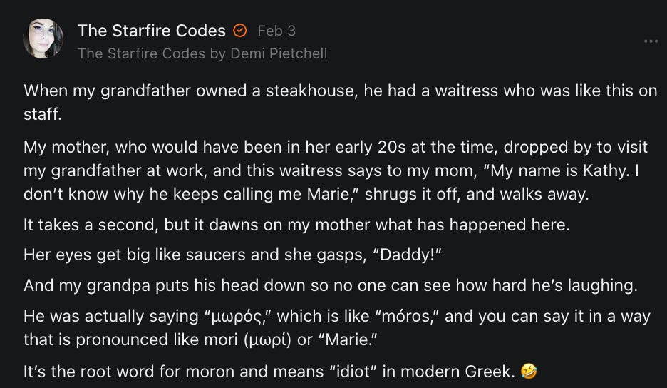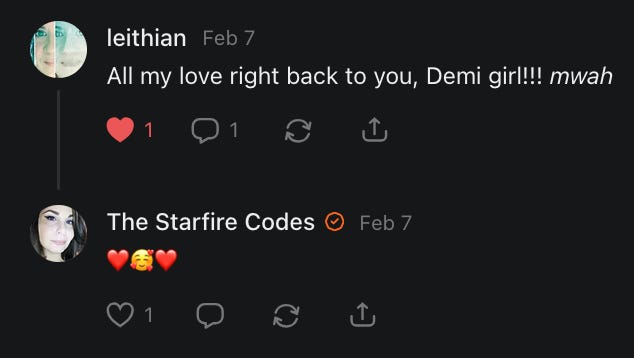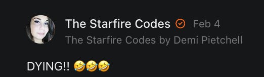 The Starfire Codes by Demi Pietchell is a reader-supported publication. To receive new posts and support my work, consider becoming a free or paid subscriber.