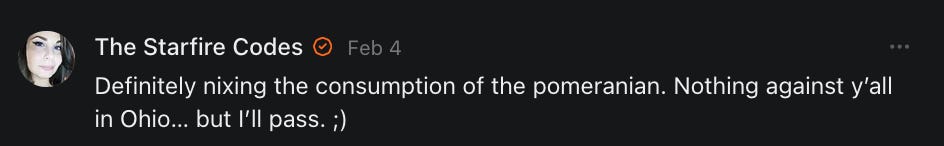 Notes On Chapel Perilous, Generational Long Term Memory and Money Laundering, Your Birth Tree, Marie, Autoincorrect, Pets Are Not Food, Food Security, Doomposting on Cringestack, and more....