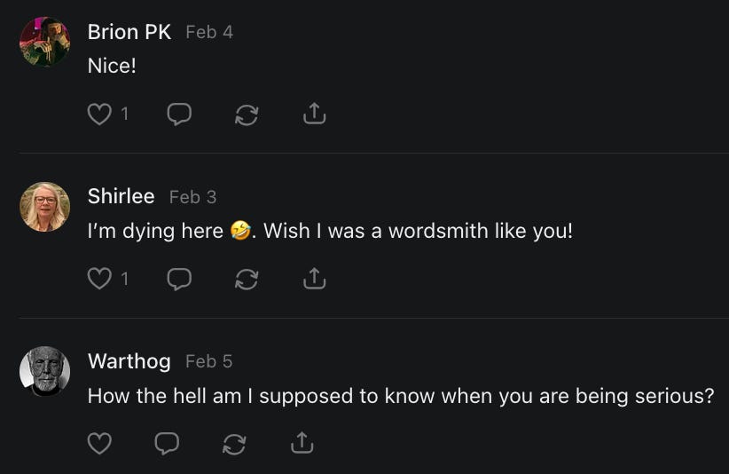 We hope that you will not only find the information herein useful, educational, and amusing, but that you will also reach out to each other by liking, subscribing, and contributing to each other’s posts, Notes, and work in general.