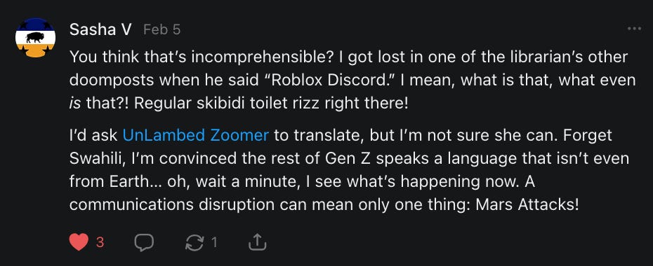 THE SCROLL is a free-form multimedia stream of consciousness digest of interesting, informative, educational, and otherwise amusing posts and conversations from across Substack and amongst Substack writers and readers, carefully curated by the author.
