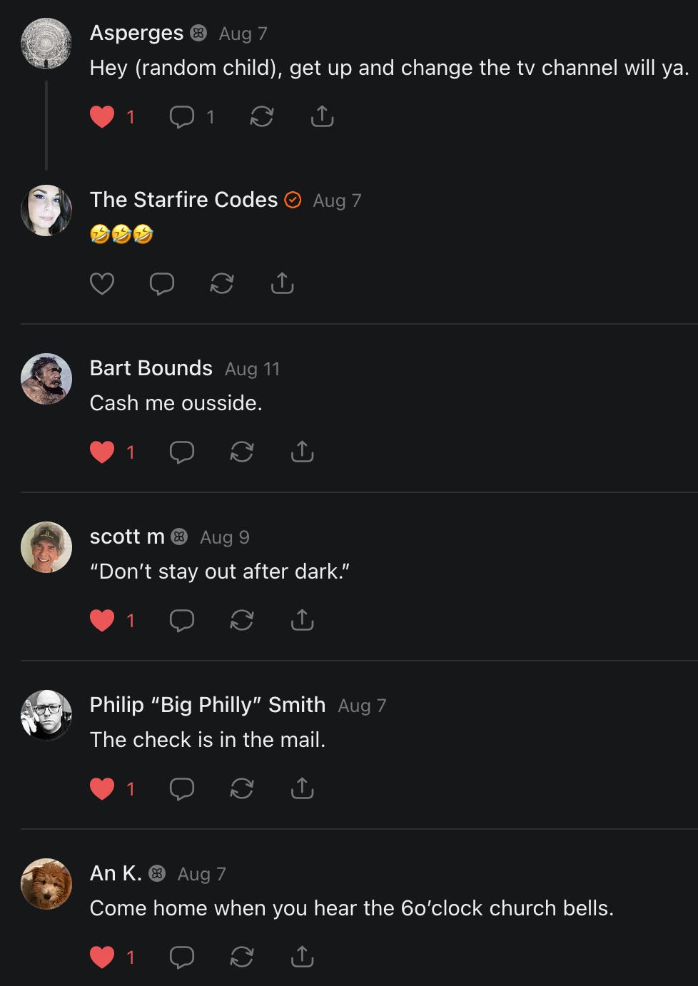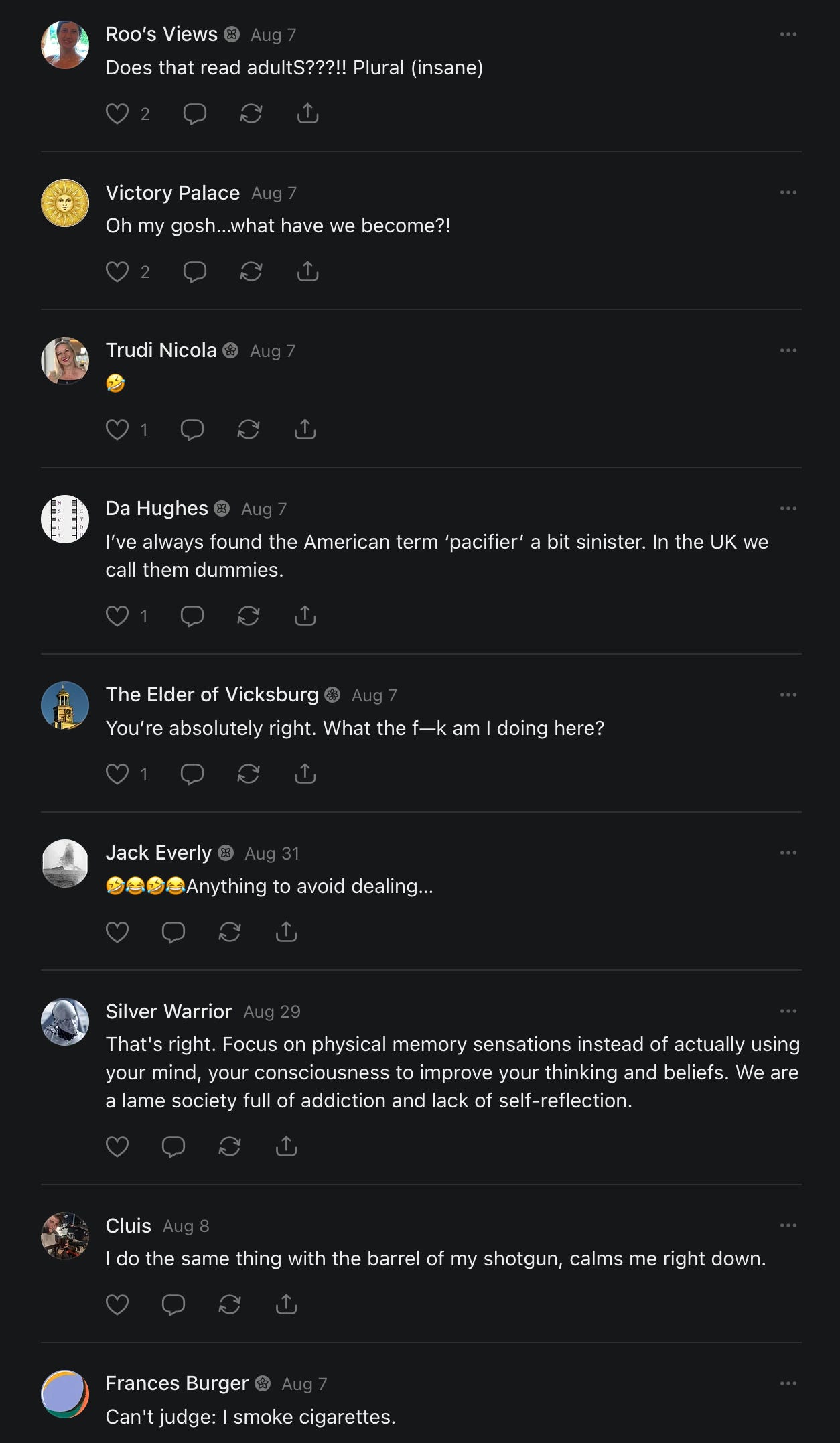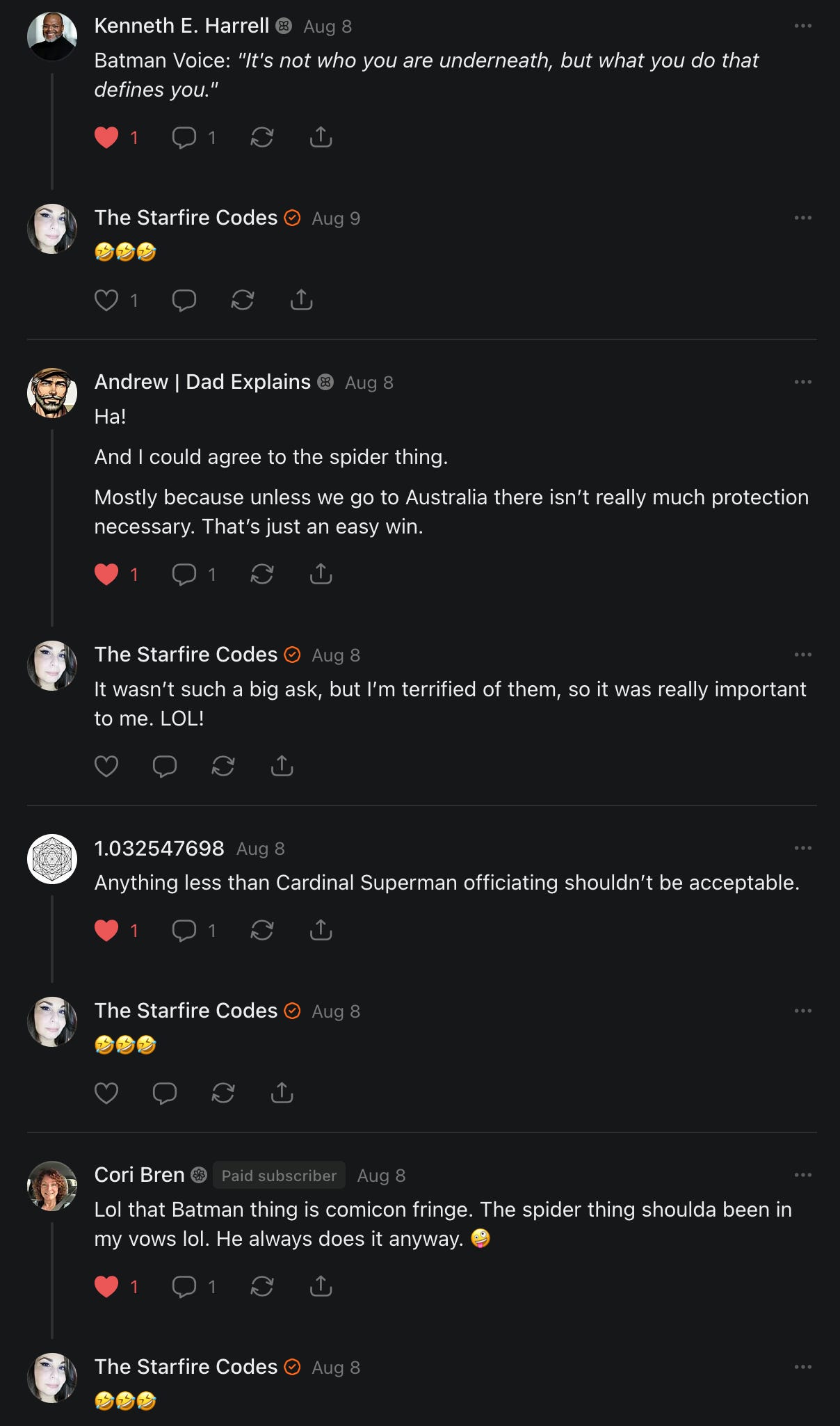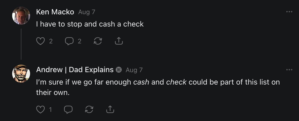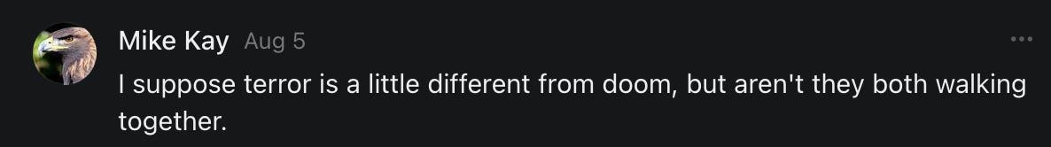 Special thanks to S.E. Reid, John Lovie, Shane Hardwick, Nick Winney, džič, Ryan Kunz, Lore Wilbert, NJ Simat 🤍, Fun & Dandy, Scoot, Stephanie Loomis, Tell Me a Mystery, Wayne Johnson, Jon Lort, Michael Persin, Matt Payne, RML, Switter’s World, Maryellen Brady 💗📚, Maximilian Siddell, Evan Miller, Shell, Jon Sparks, David Perlmutter, It's Hell, Actually, Ian Barr, Bridget Riley, КАЯ, Haly, the Moonlight Bard ✒️, L.C. Marino, HaLingoGringo, mike vague, Remus Noronha, Sean Nordquist, Kummer Wolfe, Nimita Kaul, Leroy Jenkins, christopher sexton, TheLastBattleStation, Barbara Graver, Liz Zimmers, Hero Duchesne, Logan Ashe Darrow, Cheese lady, Robert R. Fike, Kit Russell, DIANA ADMIRE, Lisa Korytowski, Jeremy Spool, Jim Davidson, Bart Bounds, Dear Citizen, overflowing ashtray, Linda Slow Growing in Scotland, Hal Gill, Fallon Clark, Jenn Zuko, Keena, Mairi Bontorno, Ray Foy, Travis Christian Lau, Love, Mike Kay, leithian, Joyce, Librarian of Celaeno, William Hunter Duncan, Michael Newberry, Dave pearen, Betty Boldbrew, Tara Deacon, Britnee Wild, Cara Slahtovsky, Alfred, Lord Featherstonehaugh, Stone Bryson, Anne West, 𝓡𝓪𝓺𝓾𝓮𝓵 𝓕 ⟢, Cameron M. Bailey, WouldHeBearIt, Jeremy Mercier, tru3, Joe Bulls, Bee_ing, Amy Sukwan, Snunya B. Inniss, 𝕃𝕒𝕥𝕖𝕣𝕒𝕝 𝕋𝕨𝕚𝕥𝕝𝕖𝕣®™, Kelila, Roger Edwards, Angel, jh, ThothStudio (JCofMars), Jack Everly, Marc André, Tom Calabretta, Andrew | Dad Explains, Zach Frey, The Brothers Krynn, Christopher Cook, Shanti Rae Lobaugh, An K., Antila H. Belist, Fireman1110, Matthew Thompson, Michael Arturo, Greg Nance, Mark R Johnson, MrEscher, Shoshana Ray, Venus, OGRE, Moth, SEMIVISION, The New Unhinged, Dana, Chris Best, Jeremy Pinnix, Matt Swider, Isaac Orr, Dakara, Ashish Kulkarni, Jeffrey Pikul, Chris Tottman, Donatela Bellone, Craig, Enon, Marc Baumann, Ruben Dominguez, Adam M. Adamek, PhD, Adam Metz, Don, {R}OGUE, Meg, Jenifer Jorgenson, Margaret Anna Alice, Swiss Transparent Portfolio, Casey R, Jeremy Camilloni, Yannis | DeFi insights, Sandra, FranieBGroovy, Trine Lovell, Contrarian Investor Media, Amy Mitchell, Richard Jannaccio, Sue Cawthorne, Paraskevi Kivroglou, Substack Team, Casandra Campbell, Ollie Forsyth, Sid Saladi, Jason Wojcik, Federico Francia, Substack, Savant in Space, Jenny Ouyang, Paweł Huryn, Kush Patel, Joshua Conner, Craving Ratio, Nathan Buff, scott m, Ken Macko, Rebecca, Jeff McConnell 🏴☠️⚔️🏴, Elliott, Eric Brown, Shawn Truax, Marinarena, Scott, Asperges, CS Norton, Ploxxii, Monty Speaks, Tim Ebl 🇨🇦, Dr. Marizelle | Undiagnosed, KMPatriot, VJ Brion, Eduardo de Leon, Cheramie III%, Erik Hogan, maryh10000, Rick, Dudge.OH, The Man Behind the Screen, MRT’s Haircut, Panama Dusa, Dave, Silent Siren, Katie Barbaro, Miss Information, Nathalie Martinek PhD, Little Gray, Kristy, Michele Wetuski, Allie Whitts, Marco Brunet, TC Marti, Grace Asharah, Philip “Big Philly” Smith, Steve Holliday, Country Wild Child, Donn Harper Jr., Kalihi Valley Druid, Jessica Garcia, Blake from WTF Over, Greg Pennell, Phillip A. Ross, Jacqueline Rendell, Tom, Shannon, Liz LaSorte, Chris Reid, The Ivy Exile, Cori Bren, Silver Bear, Ryven, Andrew White, matt Arnold, wayne john, Barbara Parker, Marion Lewis, John K III, Angela Morris, Harrison, Secret History Of The World, B art, Dante, Ktbriola, L. E. Mullin, Alice Berlow, Kelly Thompson TNWWY, Clear Skies 421, Christy Hardin, Indie, Sunshine, Paul Wittenberger, Warren Baxter, Wayne Mathias, Chelsea Hill, Shay Baxter, Bruno Rothgiesser, Nathan Carney, Victory Palace, Shelley, Silver Warrior, Will Smith, Michelle, Rose Sybil, Georgina Bruce, Anyeri, Daisy Watson, marilyn anthony, constellation chats, John Inubook, Judy, Brian Henderson, 1.032547698, Mr.Buggs, Red Barchetta, Brad Davenport, Holly Rock, Matt Price, Dawn Bernard, Vicki R, Karen LeBlanc, Barbara, AJR, Called Homeward, F. Jeremiah Chamberlain, Kenneth E. Harrell, Nancy Rusk, Z. Hajime Sertorius, Melinda D., Colin Elliott, R. H. Snow, Jackieone, SpandX, Cosmic Sushi, Kathrine Elaine, Corinne, Katy Marriott, The Bone Writer, Char, Frances Burger, Author John G. Dyer, Nick Neve, Sarah Posthuma, Cdogg, George P Farrell, Matt likes to do things., 2aAlltheWay, Kerry, Kevin Nash, The Poetry Witch 🥀, Redneck Robespierre, Travis Christian Lau, Soulma Star, Lightning Strikes Twice, Cluis, Michael DiBaggio, Gerry Hibbs, Kristy Hopkins, Konstanze, Natalia Beme, Recess Hall of Famer, Renee Green, Elizabeth Chaykowski, 🎧rcus Auditory, The Elder of Vicksburg, Da Hughes, Trudi Nicola, Adrienne, Roo’s Views, an enchantress, GeorgeTirebiter53, Philip Ferrar, Kobalevsky 42, Goddess Renell, Psychic Medium, Donna Frasca, Mark McGrath | OODA Strategist, Dynamic DV, Ngozi Janea, Rebecca Kueny, Blessed Warrior Reina, Belinda Fettke, radicaledward, Lia, Morgan OCailleigh, Lulu Pearl Trevena, Sophie Morgan Burns, joanneviolet, Valkyrie, Tom Cox, Cara West 🐉✨ Guide Of Dragons, Destiny Castaneda, BlackOrchid, glenn, Hooray Ash, Jason Chastain, Rat, Apollo's Lyre, Erin J. Morgart, April Novoa, Anthony Bevilacqua, Matangi, AllAboutEve43, Mike, IPR with Mack Morris, Michael Henry Dunn, Cheryl Turner, Karina Schneidman MBA, MS, Derek T, Shaunak Agarkhedkar, Alex de Carvalho, Stjarna, Ishmael Wallace, The Universe, The Corbett Report, Howard Bloom, Erin Pinson, Brian “Ponch” Rivera, VioletFemme1, Conspiracy Sarah, and Benjamin Sharp for inspiring these responses and contributing to the subsequent posts and conversations. And thank you to everyone else who contributed to these conversations! 🙏🏻💜💫