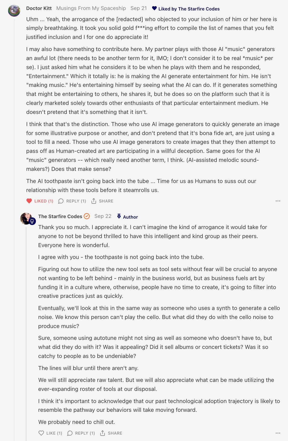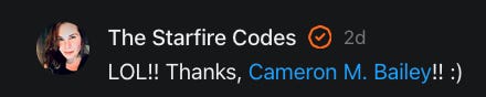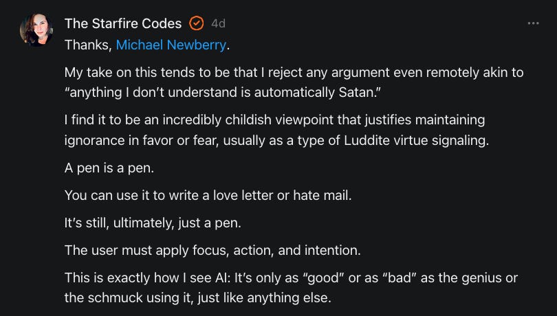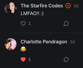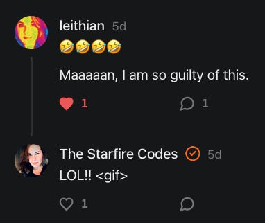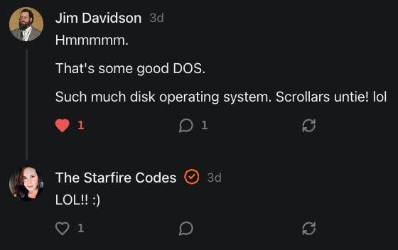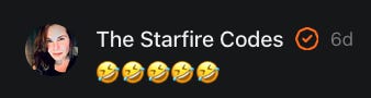 “Clearly, Apollo-Starfire telepathy produces the best content anywhere, not just on Substack. 🤣” -