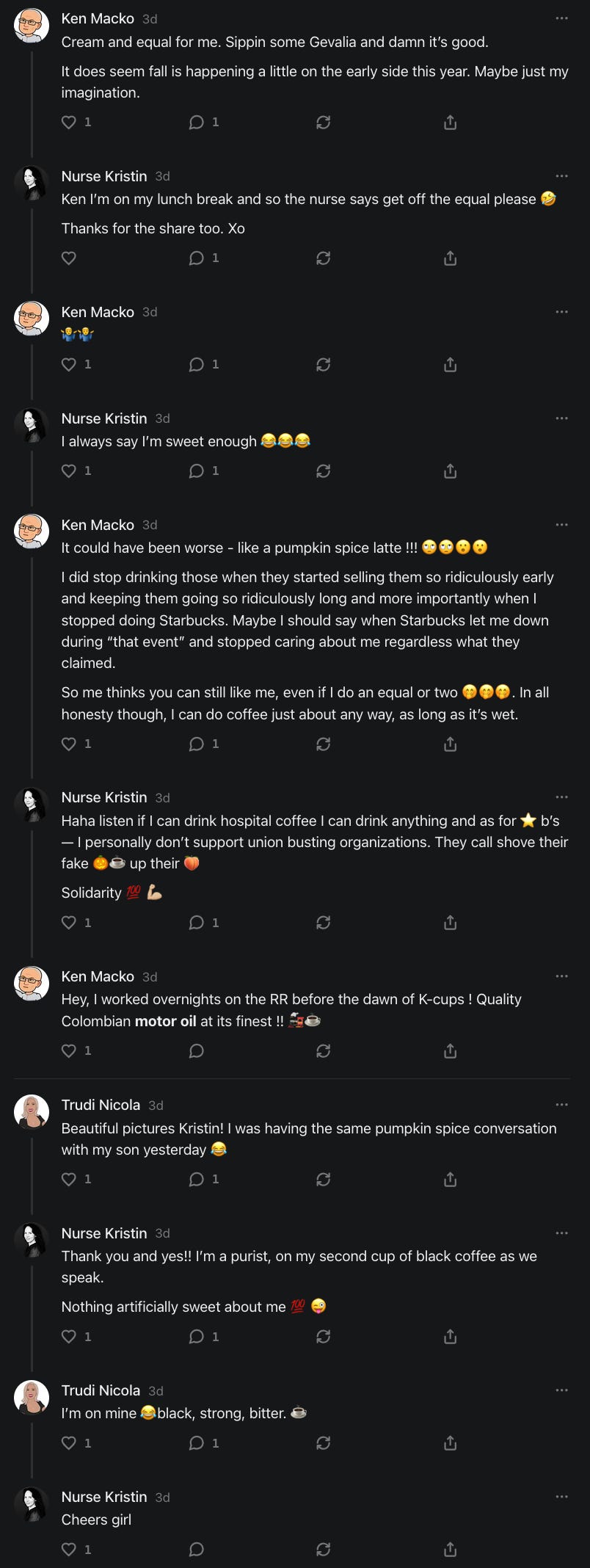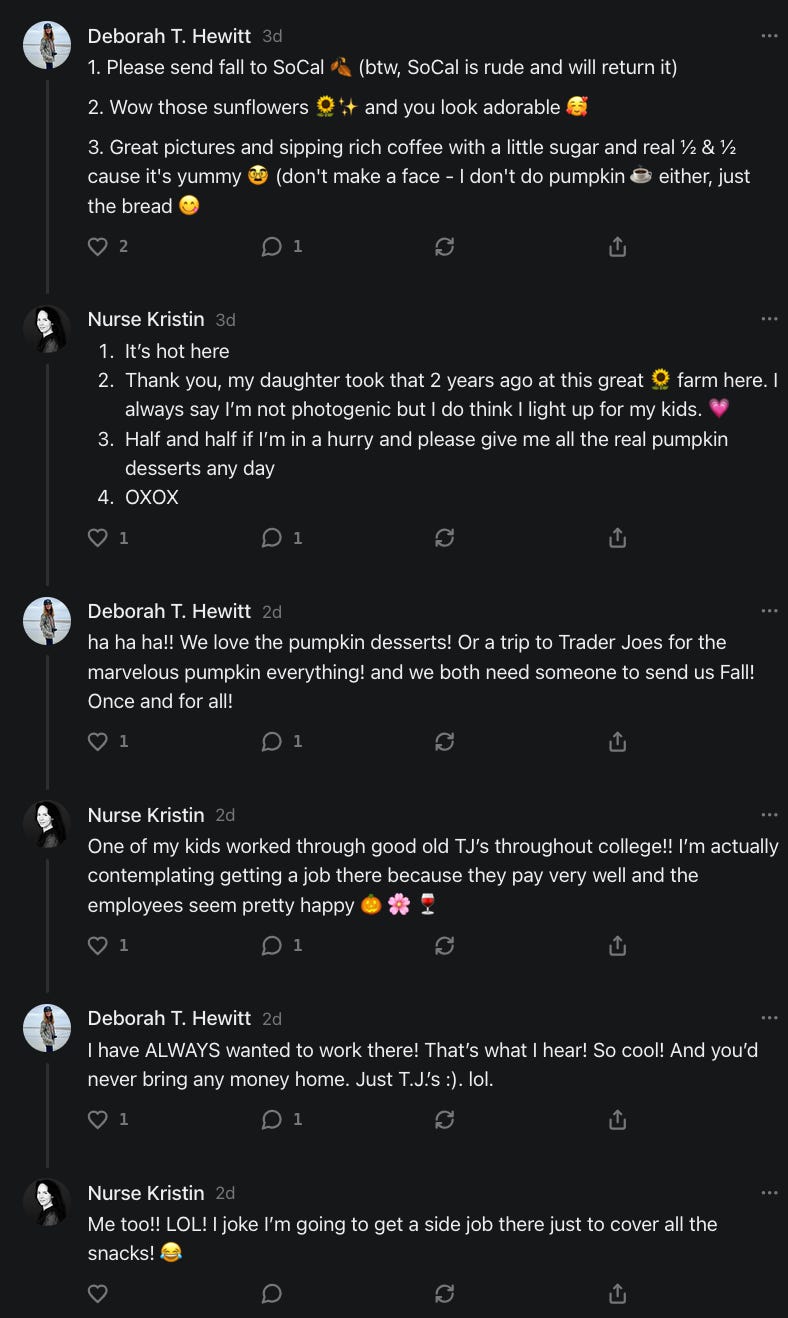 “Yes, please do! You are BOTH amazing and brilliant. I get so much enjoyment out of those exchanges. 🤣🤣🤣” -