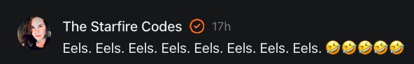 “Okay, I got tired of reacting to every comment. This entire convo is cracking me up. 😂 Okay, when