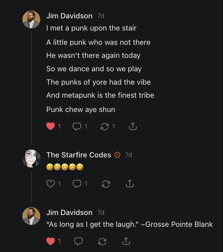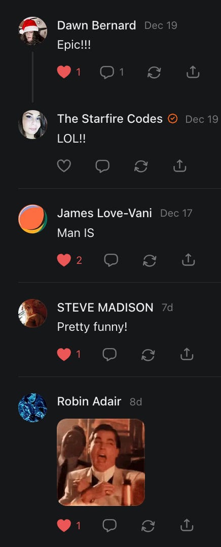 We hope that you will not only find the information herein useful, educational, and amusing, but that you will also reach out to each other by liking, subscribing, and contributing to each other’s posts, Notes, and work in general.
