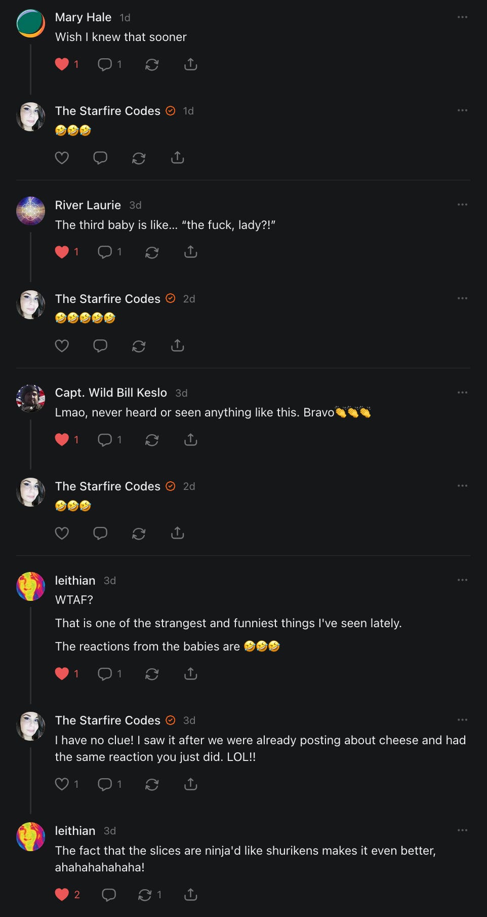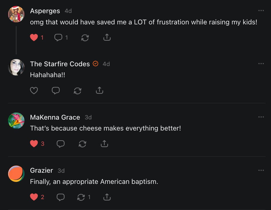 An excellent collection of the fun that is Notes. I am proud of my contribution. Also still dying from the throwing cheese on babies clip.