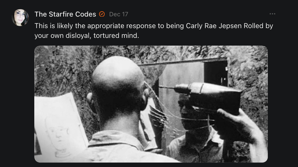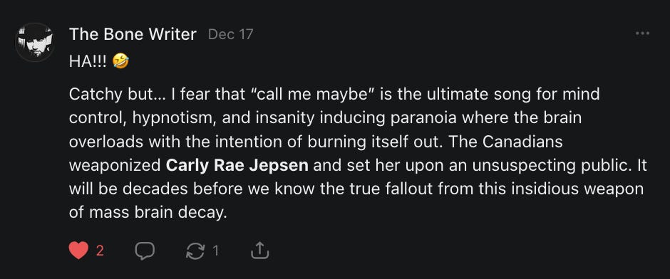 Notes On Carly Rae Jesper, Chicks Dig Coldplay, Dick Rolling, Gooning for Faygo, Grooming, Ivermectin Psyop, Jiangshi, The Katz Came Back, Pi, Punkpunk, Underground Cheese Bunkers, and more....