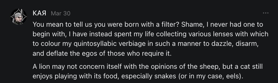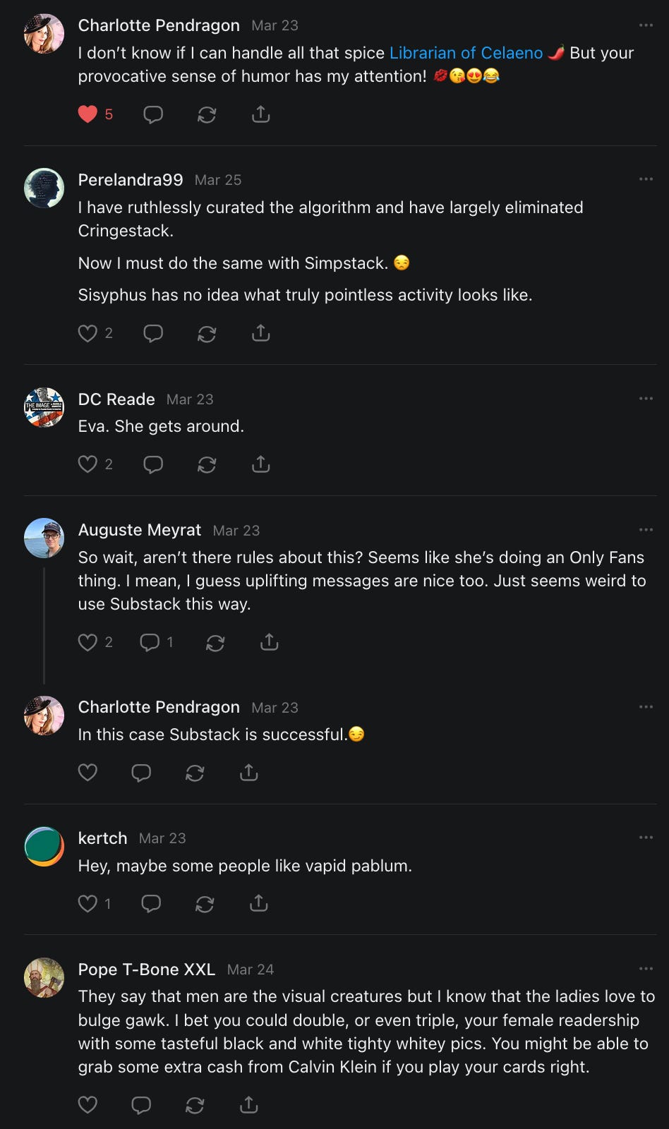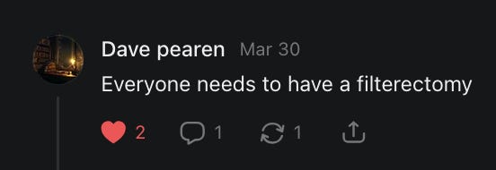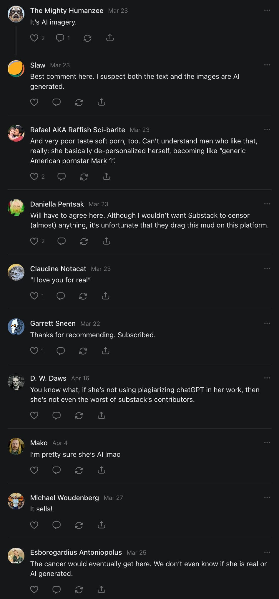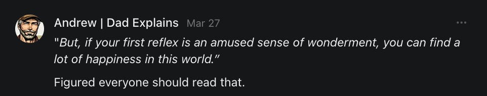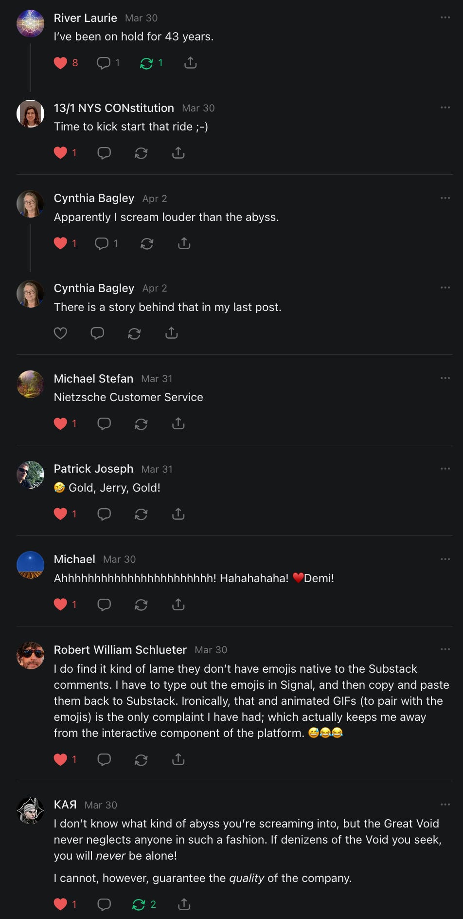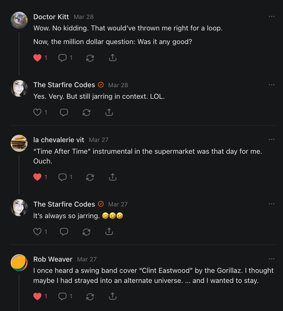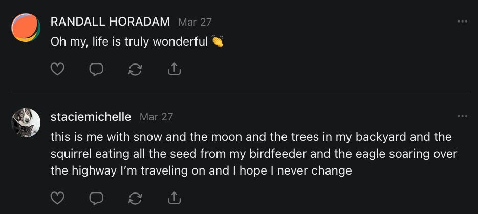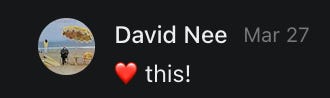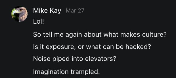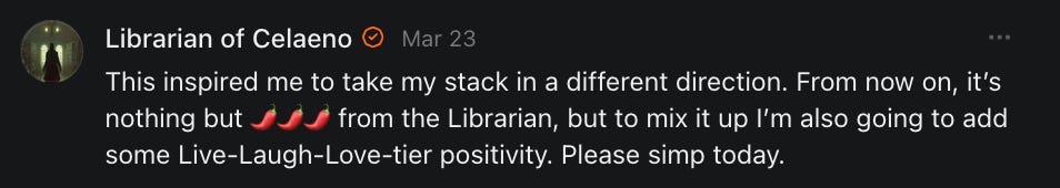Scrolling through this post is like experiencing a Substack feed with a superior algorithm. Nicely done.