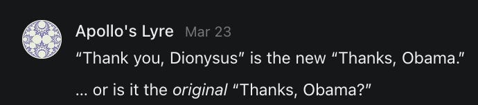 THANK YOU, DIONYSUS….