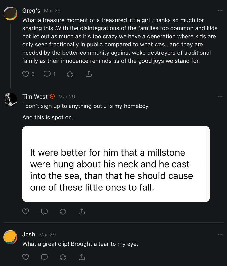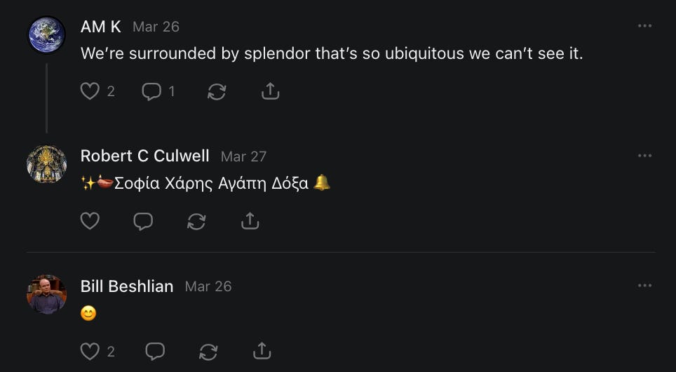 Special thanks to Cynthia Bagley, Librarian of Celaeno, Apollo's Lyre, The Horn Gate, PhiLogoSophia Δ, Barbara, Alfred, Lord Featherstonehaugh, Z. Hajime Sertorius, Mike Kay, Nathalie Martinek PhD, The Mighty Humanzee, Dave pearen, AllAboutEve43, Jacquelyn Gill, Dansia, Chris Hall, DE, Nick, Ray Foy, Ascension Academy, TC Marti, Sotiris Rex, Nana Baakan Agyiriwah, Treemason, Jeanette van Dijk, TheLastBattleStation, Perseus, Gas Axe, Læwis, If U Think U Can Handle Truth, Somewhere, Gary Witt, Alison Bull, Janine, Renee Green, Sasha V, The Chief Bunkum, Walking Disease Vector, Taylor, Duchess, Rosemary Hargraves, Dani El DuBois, Caroline Buck, Surya tattama, The Talmadge Report Agent 355, Anglo Barbarian ⚡️, aux is playing, Lisa Scott, Rick Lundin, Kassandra11, The Cormorant, Alicia Lutz-Rolow, JP Spatzier, Noel Veva, Terri mclaughlin, Wolfgang Exel Watson, Tracy Treloar, Oscar, Dx, Annika Smith-Chasseuil, Anthony Colpo, bvd9701, Linehand, Nefahotep, The Alchemist's Dream, Neoliberal Feudalism, Shadiya, Fulgurite, M. Barbarian, River Laurie, Iran Cary, Mahesh Gangwani, Luis Sánchez, Mourad Mouri, Thomas Maltabes, DC Reade, Tony Gallucci, Jose luis rojas rojas, niks, Richard Duran, Yunos khan, jeremy van buren, Jay, Santiago Ascanio, Squilon, Eva Savagiou, Edvin, EP, greg kalanick, Michel, Bradford Forrest Parker III, Patrick O’Hanlon, Ken, BMoreiraGaming, Loren Henry, mohan kumar, SRF, Eduardo Alves, Marc, Tod L, Linda, Seth @ Substack, Ben Cohen, OGRE, The Contrarian Capitalist, Joseph, Aly Dee, Theodore Whitfield, Klink, Slaw, Francesca Bossert, Adrian Vermeule, Daniella Pentsak, Claudine Notacat, Louis Noble, Garrett Sneen, C C, Der Einzige, Mako, Dylan Giles, Smartguy123, CSA1609, Joachim l'Étoile des Vœux, SoakerCity, John Vandewitte, Obaretin, Tom Calabretta, Arda Tarwa, D. W. Daws, Michael Woudenberg, Kay You, Joachim l'Étoile des Vœux, Christopher Schrauben, Christopher Brunet, Esborogardius Antoniopolus, Aodhan MacMhaolain, AnAmericanReader, Rafael AKA Raffish Sci-barite, Rob Crowley, José Domingo Martínez, AJ, Vlad Ureche, Cole Noble, Andrew Mileur, Aodh Séamus, The Wandering Soul, David Pawley, Simon Tanner, Auguste Meyrat, Larz, The Ivy Exile, An K., HamburgerToday, An American Writer & Essayist, The Brothers Krynn, Koltin Scott, Asperges, American Nobody, КАЯ, Michael Newberry, Braeden Mitchell, konshtok, Jason, Matthew, Ian Brocklehurst, J0ESTAR, John Pronos, Wesley Beech, Ragnaroker, Valsan K, Robert Gavrel, SimonJJ, Wrestleswithgod, George Gersch, 2Goldr, Patrick Chew, Neil Salmon, Mike Van Camp, Nexrun Jasari, BMoreiraGaming, Joe Buckmaster, Mystic William, Tommyknocker, Knightly, frieko, Joefx5, Jonathan Hanton, Marinarena, Bradford Forrest Parker III, Eric, Tim shaw, Mark B, Pamela S., Bjarne Klavsen, xnt, Vlad-Cédrick, Henry jr panesso, Ooncha Shareer, Ismael velasco, David Sipes, Romeo, Hernan E Cortes, John ferrer, Jay, Alexander Campbell, Love, Bruno MAURON, Dexter Morgan, Albert Stashin, Eugenio Corcoles, Ant Viz, Servano Janssen, sam bradstreet, Thomas Maltabes, Anthony M Shaw Sr, Faraz Pirzada, Mosa Makki, Raffa Best, Jim, All4Anything, Canadian Nazarean, Pope T-Bone XXL, kertch, Perelandra99, Shirley, Blessed Warrior Reina, The New Unhinged, Sasha V, Devin Teichrow, Mondas, The Bone Writer, Mason, Storyteller, Ken Macko, Erik Hogan, The Underdog, tru3, Calvin Perrins, Surya tattama, Joe Bulls, Alysia Moonrise, Julie Perry, Christopher Cook, Goddess Renell, Daisy, 13/1 NYS CONstitution, Gerard Roll, Andrew | Dad Explains, Tom Slick, JacquelineP, Robert W Hermann, Exoteric, Peter Jones, Olivia Puffymuffin, Siddhant Bakshi, Tam, Nick Smith, Robb, Saralyn Fosnight, Donna Carrillo Lopez, Steve Vollum, Robert W Hermann, Angela T., Tony Watkins, Eliza Anderson, MelodyB, Jean Smith, Russell, Anglo, Cherre Dyer, Kathy Schuetz, Cathy Libnic, Julia O‘Sullivan, OKRickety, Stefanie, Ivona, Jen, Fiona Dene Ison, mlw, Amy, John Jefferys, Injore, Kalani, JacquelineP, Barbara Alderfer, Fiona Flynn, Paulette Teel, Ryan MacDonald, Carol L Feather, Flory, Anna McNuff, OKRickety, Yvette Worrall, Will, glenn, Christine Hart, Barryonthefly, Pamela S., Lloyd, not Floyd, Ben Black, swiley, M Le Baron, Dale, Jim of Seattle, Looking For The Light, Susiebelle, MelodyB, Christine Terry, Séamus Michael Wilkinson, Pamela Hipp, Aural Sects, Craving Ratio, Alison Denham, MattieRoss, Jean, Jane, ged, DAN GRANT, Ellen Brown, Andrew O'Donovan, JaySo, Elizabeth, James Mathis, C.J. Heck, Navishkar Rao, Margaret, Deirdre Hankins, Esme, EIZEWIDEOPEN, Jane Stuart, Robert M. Ford, John Jackson, Andy, Robert C Culwell, ExcessDeathsAU, Chris Gorman, Jackson Homesteading, Chelie, Margie, Bill Beshlian, AM K, Tama Miller, Miranda, EvanTreu, Lisa Flynn, Michael A Alexander, Debra S Michels, An Rodriguez, Kevin Fay, LoveIsCourage, Monty McCurry, Betsy, Pattie, Shrinking Violet, Irene Wrenner, Belonging & Beyond, Jean, Jake Purvis, Cameron McNeish OUTDOORS, Iain M Norman, Doreen Corwith Eckert, Òran Mór, Cheramie III, Lauren, Be A Super Dad, Dale (Cyber Safety Guy), Robb, Solo Clan Dad, Somewhere, Jan Volny - BalanceForge, Short Lifter Dad, The Dollar Download, Camilo Zambrano, Lala, Joey Carabetta, Daniel O, ThothStudio (JCofMars), Trudi Nicola, Vance Gatlin, Tess McCarthy, Kaitlyn Rightmyer, Tracy, Teresa Thibodeaux, Jeff McConnell, kris peeters, Karen LeBlanc, Debra Szalay, James Love-Vani, Grand Mal Twerkin, The Pragmatic Prognosticator, Shannon, Atomic Statements, T.L. Parker, Cori Bren, Gertie Talks, Alan Freshwater, Dorthy Curry, staciemichelle, RANDALL HORADAM, Bernie Freytag 🙈, Perry Chalmers, Susan Austin, Katherine Blair, Mary Farrell, Colleen Johnson, Carmen, Hyggieia, Lisa Kelly Zuba, Willo Treschow, Janet Caldwell, AlkaTroy, Kai Kinzer, Alberto Tirado, David Bloom, The Wandering Soul, Sointu, Susan LaMountain, Tom Taylor, Paula DiGiovine, Bojibelle, Jill Foster, C. Werstein, Jane De Haven, Sherry Buehler, Emily Terrell, Matt Capalby, Smackey Bare, Bill McLaughlin, Denis