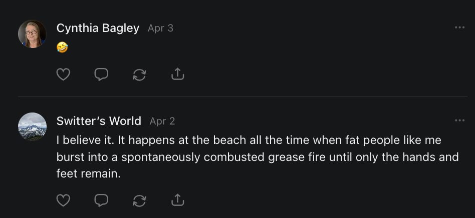 I am back from my holiday and back at SCROLLing Substack. Thanks for including me, my amazing Floridian Angel!! I FUCKING love you!! 😂💖✨