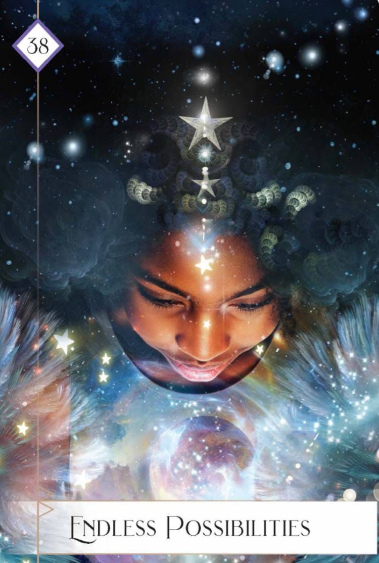“Endless Possibilities. Key concepts: unlimited potential, moving beyond limiting beliefs and the filter of an unhealed past, using your awareness to discern what is possible and having the courage to leap beyond even that. You look at the world through the lens of your life experiences, personality, and conditioning. That filter determines whether you believe in an abundant universe of endless possibilities . . . or various degrees of limitation and a finite range of options. When your expectations, unconscious or otherwise, are based on lack, it’s difficult to see what is truly available to you. Today ask yourself what you believe. Are there limitless potential outcomes to align your energy with? Do you know intuitively that there is more to life than meets the eye? (And are you willing to act on that knowledge?) As you believe, so will it be for you, as your energy will attract its match in the outer world. Conditions meet expectations. Either your world remains the way it is—in various forms yet essentially unchanging—or you become more. Everything shifts as you open yourself up to a greater version of you and a more meaningful life, discovering opportunities that better reflect your true self. This is the nature of your dynamic relationship with the Divine. Today stand with open arms, knowing that you are stepping into beauty, into experiences that are potent and transformative. You are walking past the line that you and others drew long ago, leaping over what was and toward what will be. You are more than you were. Now, what is it that you want? The treasure is yours—you just need to believe it.”