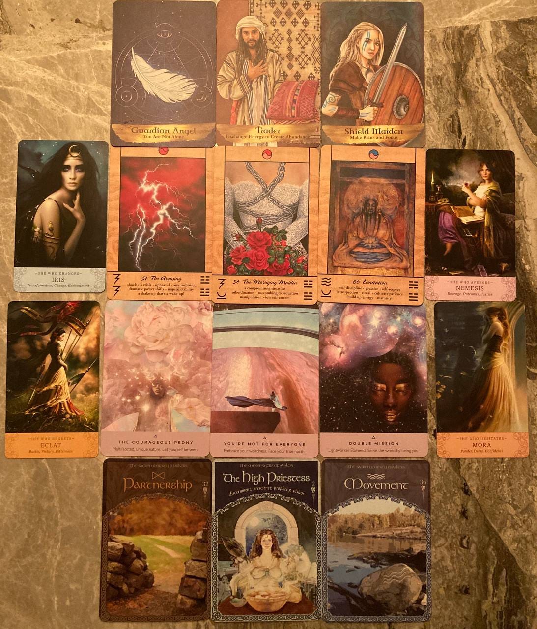 What you’ve asked to change likely has to do with some regret you’ve had. The Eclat card indicates that you will have victory in this, but no battle fought is without loss. Again, we’re seeing the theme here that letting go is necessary in order to make room to receive. With the new moon approaching, it’s an opportune time to think about what changes you’d like to make and how you’d like to set your intentions in order to move forward.