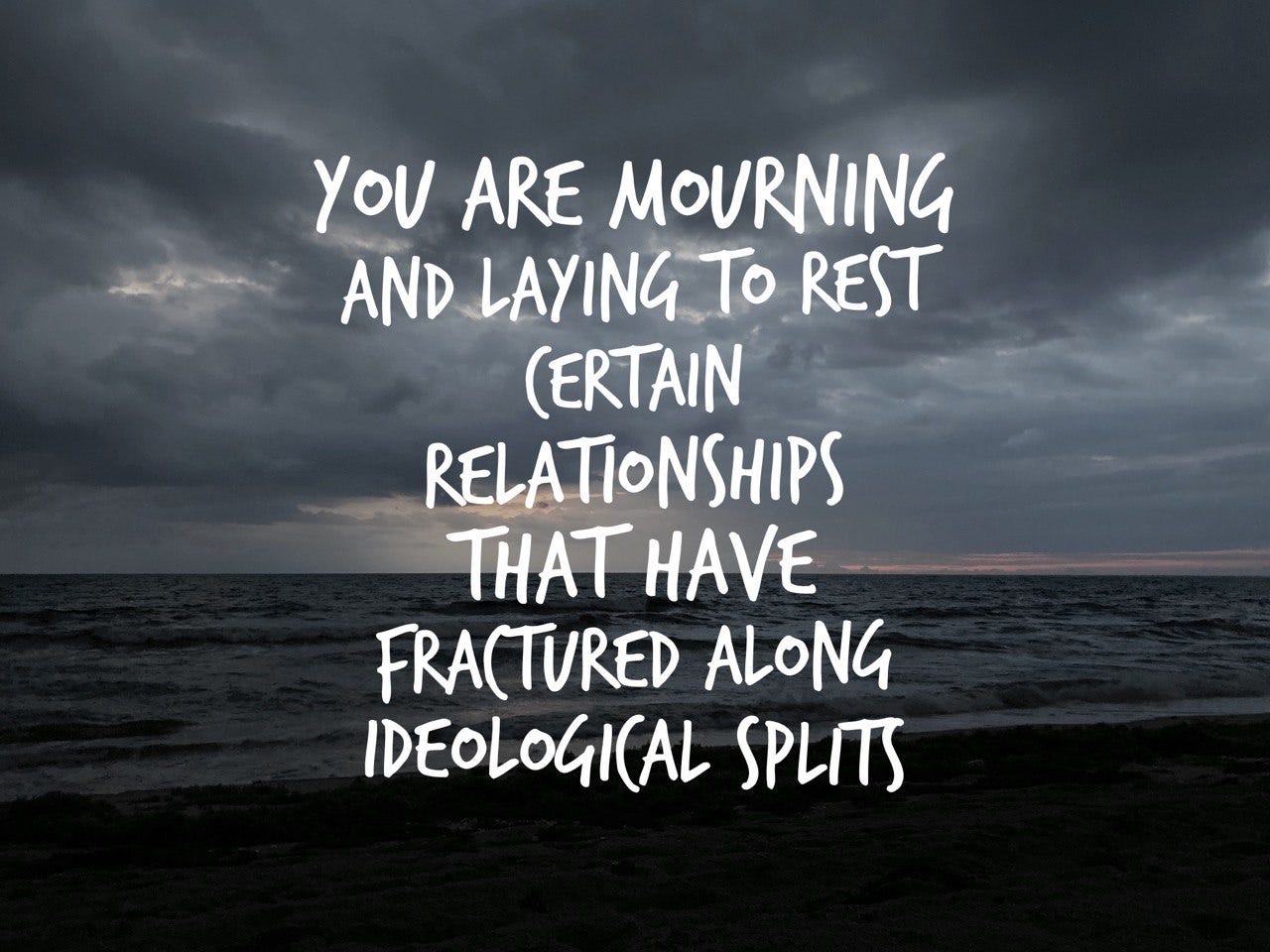 You Are Mourning and Laying To Rest Certain Relationships That Have Fractured Along Ideological Splits