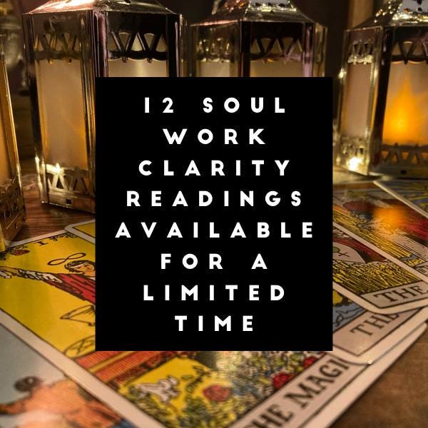 I have 12 spots available for Soul Work Clarity Readings at $50.