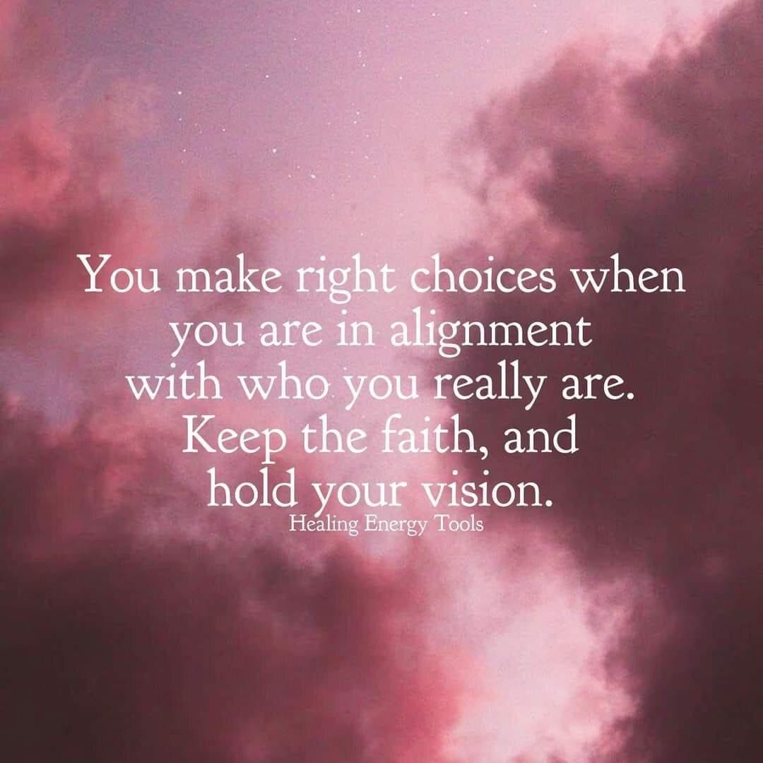 You Make Right Choices When You Are in Alignment With Who You Really Are. Keep The Faith And Hold Your Vision.