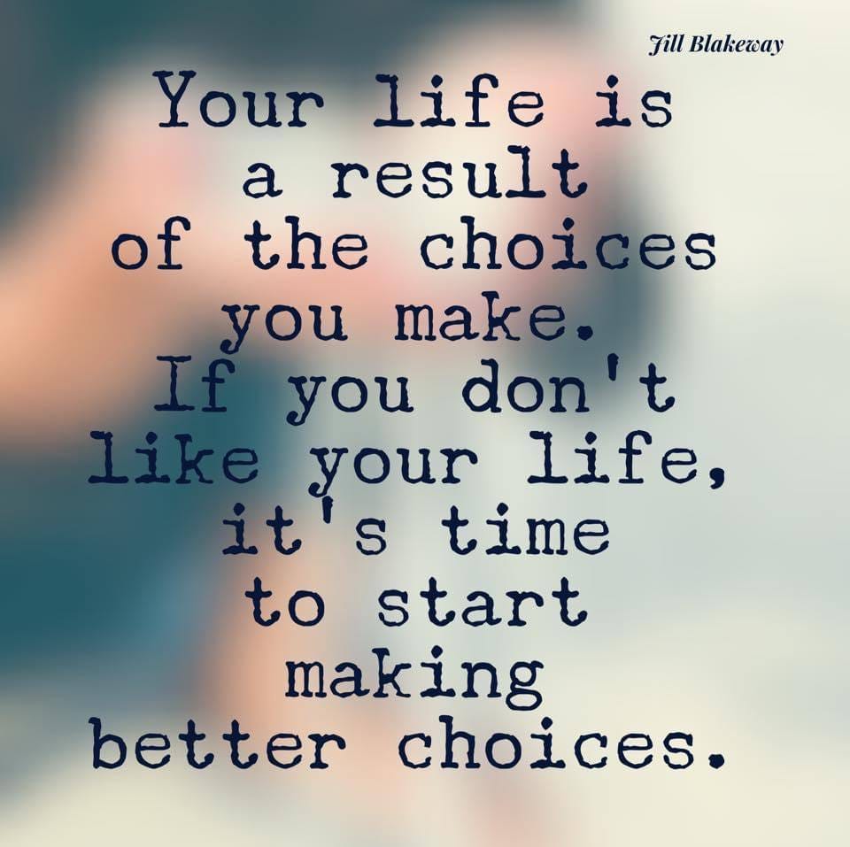 Your Life Is A Result Of The Choices You Make. If You Don't Like Your Life, It's Time To Start Making Better Choices.